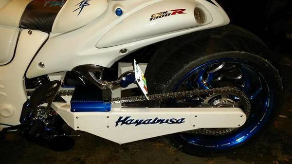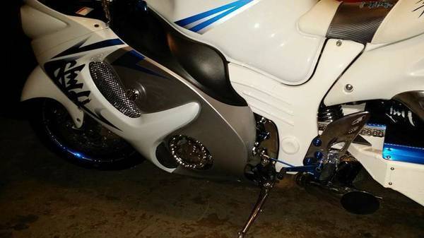 2009 Suzuki Hayabusa with extended swingarm, 60 fat tire kit, ir ride suspension clear covers on stator and clutch and lots of powder coated candy blue and chrome parts. Blue and white led kit all over bike controlled by key fob. All work professionally done by all things chrome in Hendersonville Tennessee. Only thing stock on bike is the fairings. There is more done to bike but too much to list. Have to see it to appreciate. Over 25k invested. Have to sell due to divorce. My loss is your gain.
