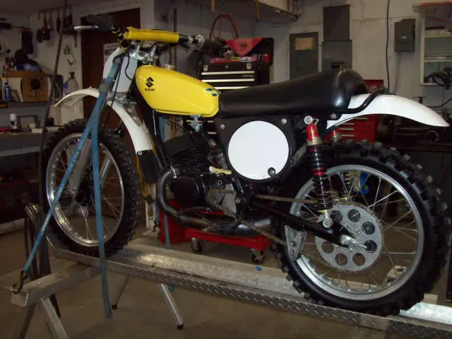 This is a 1973 TM 125 vintage motorcross bike. Bike is excellent condition,with rebuilt motor useing suzuki OEM parts. Head is milled .020 and cylinder is mildly ported.Tank is straight with no dents. Front and rear fender's are new. Has new bars, ear tire, procket's and chain. New K&N air filter. This bike has circle F pipe rebuilt fox shocks and pvl ignition with 8 oz fly wheel weight. New OEM kick start lever also, his part alone is 190.00.I couldn't stand the wore out part that was on the bike. Have spare clutch parts, iston rings head and base gaskets that will come with the bike as I am out of the 125 sportsman class. I raced this bike at 1 ARHMA event per year. Has 4 races on motor since rebuild. Possible delivery around Daytona bike week. Feel free to ask any questions regarding this machine.