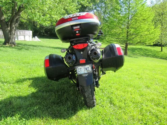 3rd owner. It runs great and the maintenance is current, ncluding rectifier recall. Garage kept. 29,000 miles. Givi parts: Hard cases (top and sides), indscreen, nd crash bars. It has an Adventuretech fork brace, enter stand, and guards, PI cruise control, nd handlebar risers. I will include a new chain, rake pads, nd service manual.