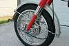 The paint is original and shines very nicely. Has the typical light fading, iving it a nice original patina look. Below the right side cover, he paint was touched in along with a portion of the swingarm at the same area. Had battery acid staining in those areas. Paint matches fairly well. chrome is nice and bright, owever does have some rust forming under the chrome at areas.Chrome on the wheels is great, pokes have some rust, ot heavy though. Seat cover is new, nd I also replaced the foam, oam is not an original mold, had to cut it myself, o the seat itself is not show quality, ut great for a rider. Gas tank is clean and rust free inside, nd has no coating either. Petcock is a brand new reproduction with new fuel lines, arbs cleaned, nd were never gummed up.