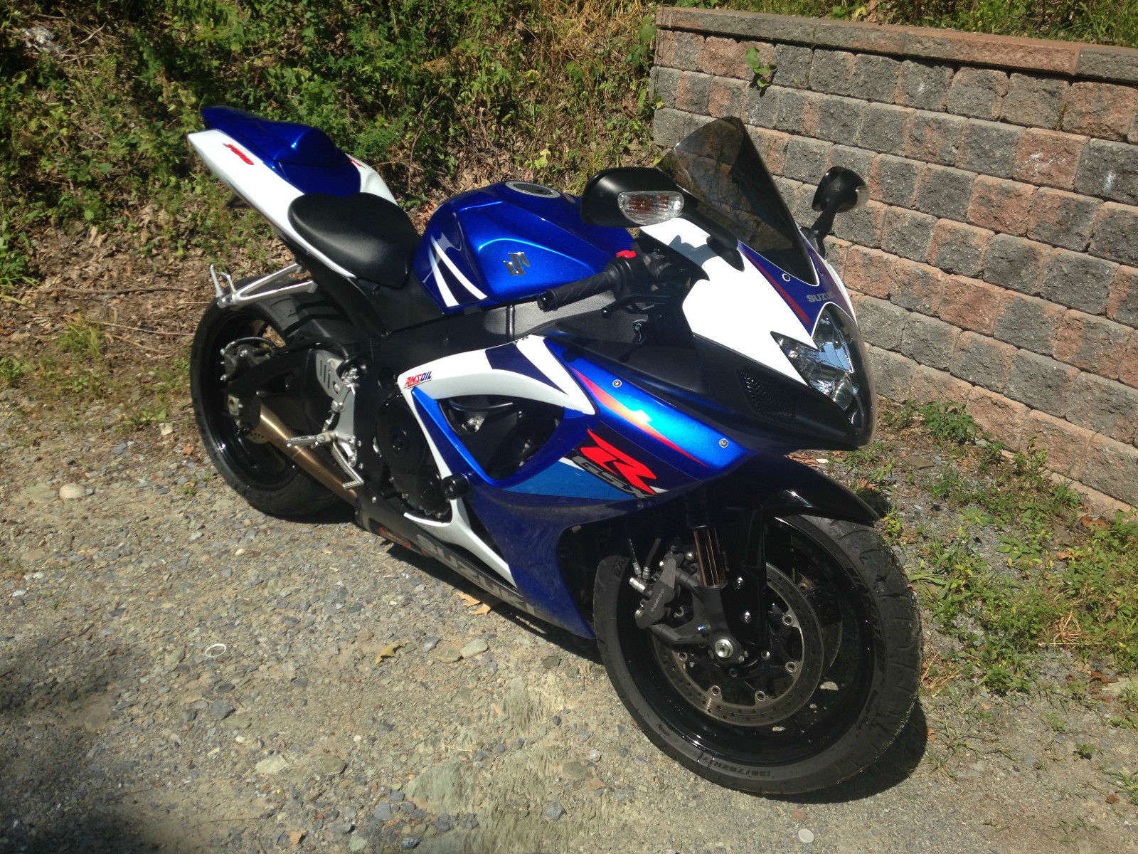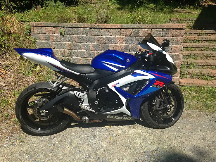 White and Blue 2007 GSXR 750. Currently has 4783 miles. Has a Jardine exhaust system. power commander 5 and k&n air filter. adjustable clutch and brake levers i also have the factory ones as well. Recently had oil change and brake master cylinder recall fixed. No scratch of any kind. other than a small crack on the right side faring do to a tie down strap during transportation bike has never been down and is very very clean always garage and stored properly during the winter I'm the 2nd owner of the bike. Any question please ask. Thanks.