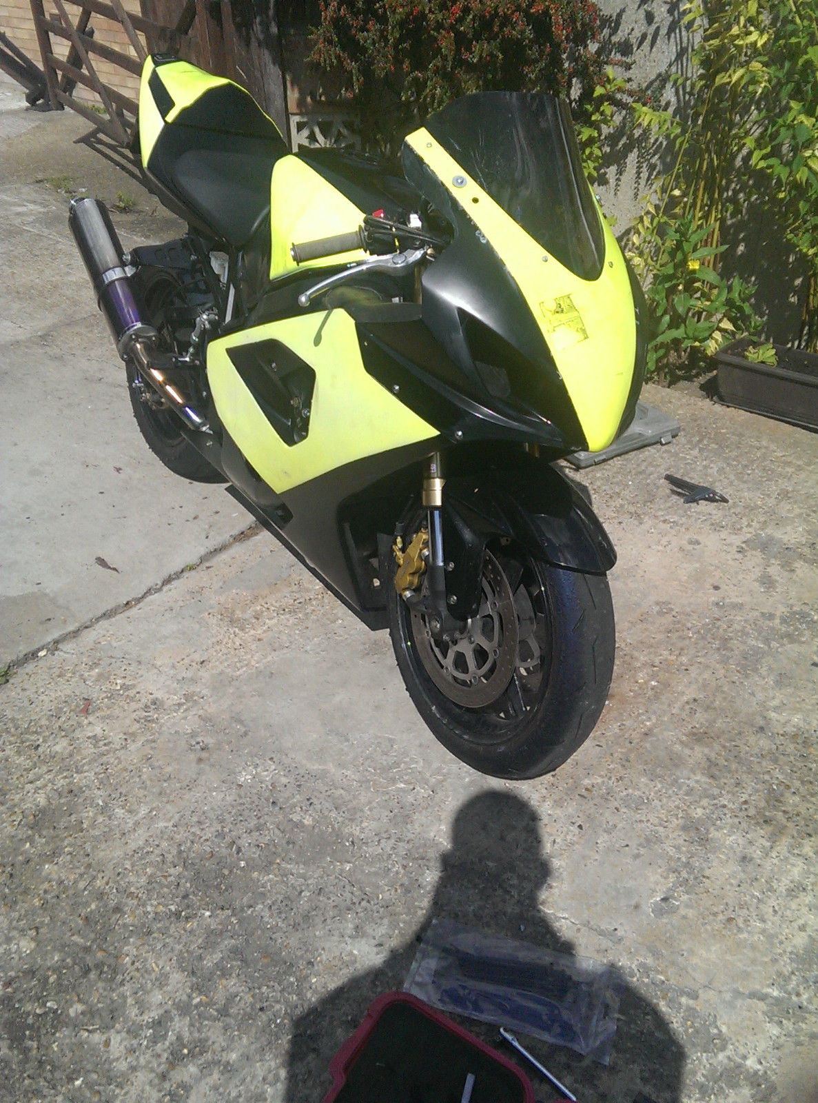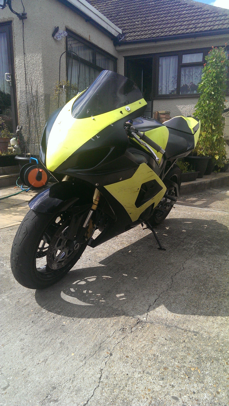Suzuki GSXR750 K4 2004Bought as a project to turn into a track bike but now started racing on a 600. bike isn't an insurance write off. Bike can be put back on road if wanted. Engine has had new crankshaft and conrod bearings. Oval exhaust on GSXR 1000 titanium headers and link pipe. Double bubble screen is cracked but still in one piece. also comes with standard clear screen. HEL braided brake lines front and rear. GSXR 1000 320mm front discs with spacers up from the 300mm standard discs. Tank is from a GSXR 1000 K3 and has dents. Fairings are standard road fairings with holes fibre glassed. wouldn't take a lot to remove and put back on road. Quick release fuel cap. Chain & sprockets replaced end of last year. Valter moto rearsets. Pair of Supercorsa scrubs. SC1 front and SC2 rear. Solo seat cowl. Tail tidy. V5 present and in my name. Small show plate. Viewing welcome and any questions welcome.