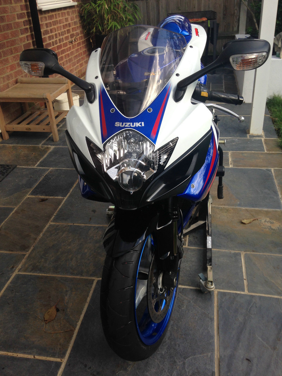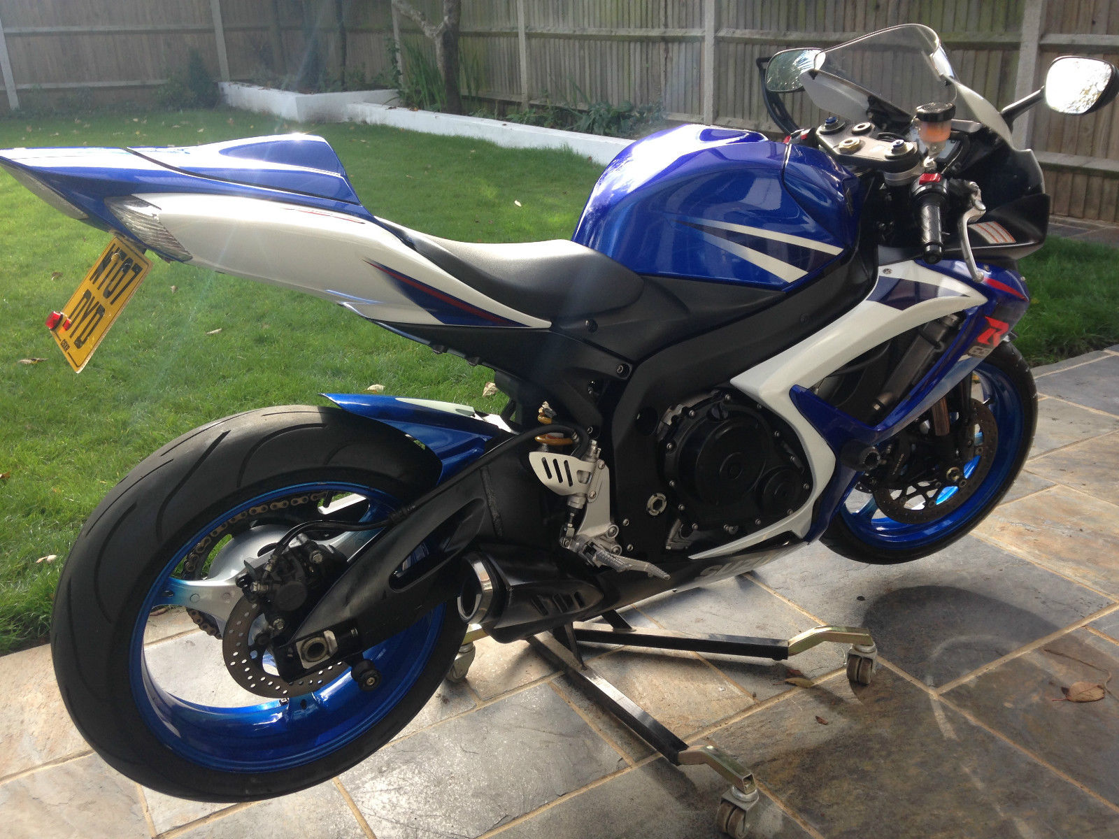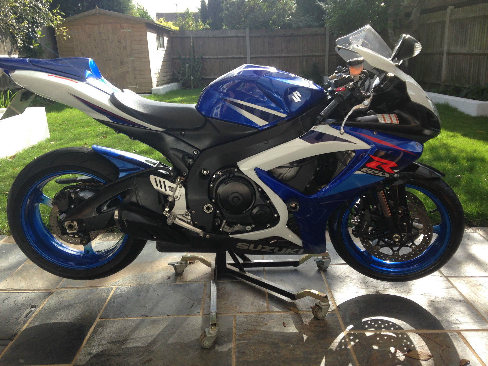 SUZUKI GSXR K7 750 IN THE CORRECT COLOURS2007(07) 11. 00 MILES COMPLETELY STANDARD NEVER MOLESTEDTHIS IS PROBABLY ONE OF THE MOST LEAST ABUSED K7 750'S IN COUNTRYI BOUGHT THE BIKE LAST YEAR AS A FIRST BIKE AND ON MY FIRST OUTING I WOBBLED AND DROPPED HER BUT LUCKILY THE CRASH BUNG SAVED HER FROM ANY MAJOR DAMAGETHE ONLY DAMAGE IS A HAIRLINE CRACK ON THE HEAD LIGHT COWL WHICH IS VIRTUALLY INVISIBLE BUT APART FROM THAT IN FANTASTIC CONDITIONSERVICED LAST YEAR AND AT THE SAME TIME A NEW BATTERY WAS BOUGHT THEN LIVED IN MY GARAGE EVER SINCE. I PROBABLY HAVE NOT EVEN COVERED A 1000 MILES ON HER SINCE I HAVE HAD HERI NEVER HAVE TIME TO RIDE ANY MORE! ALSO ITS WAY TOO FAST FOR ME THE STAND IS ALSO FOR SALE ON SEPARATE NEGOTIATIONMOT WILL BE ARRANGED FOR THE BUYER AND CURRENTLY HAS NO TAX BUT CAN ALSO BE ARRANGEDFOR VIEWINGS/INSPECTIONS OR ANY QUESTIONS PLEASE CALL 07958 200 500
