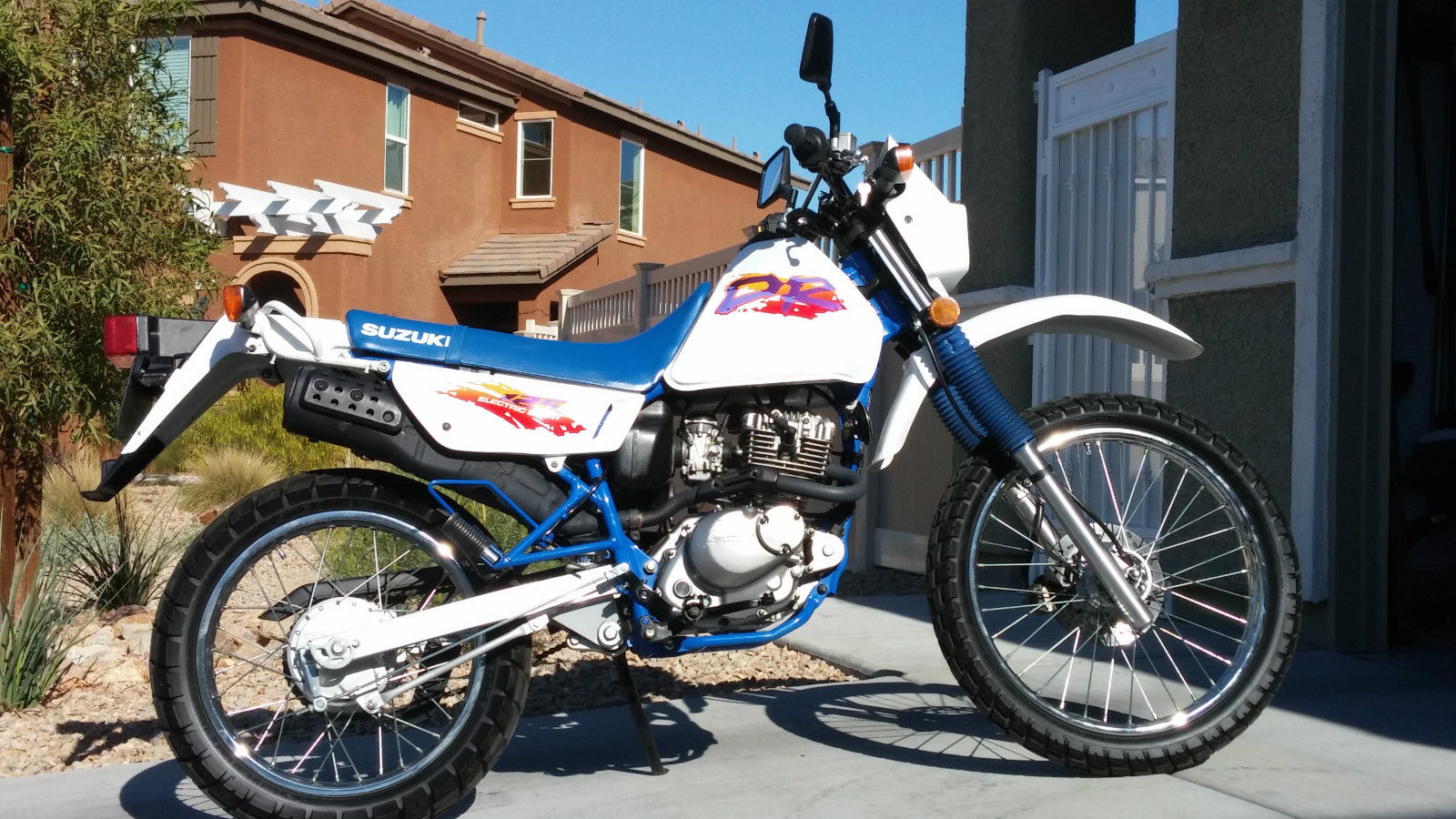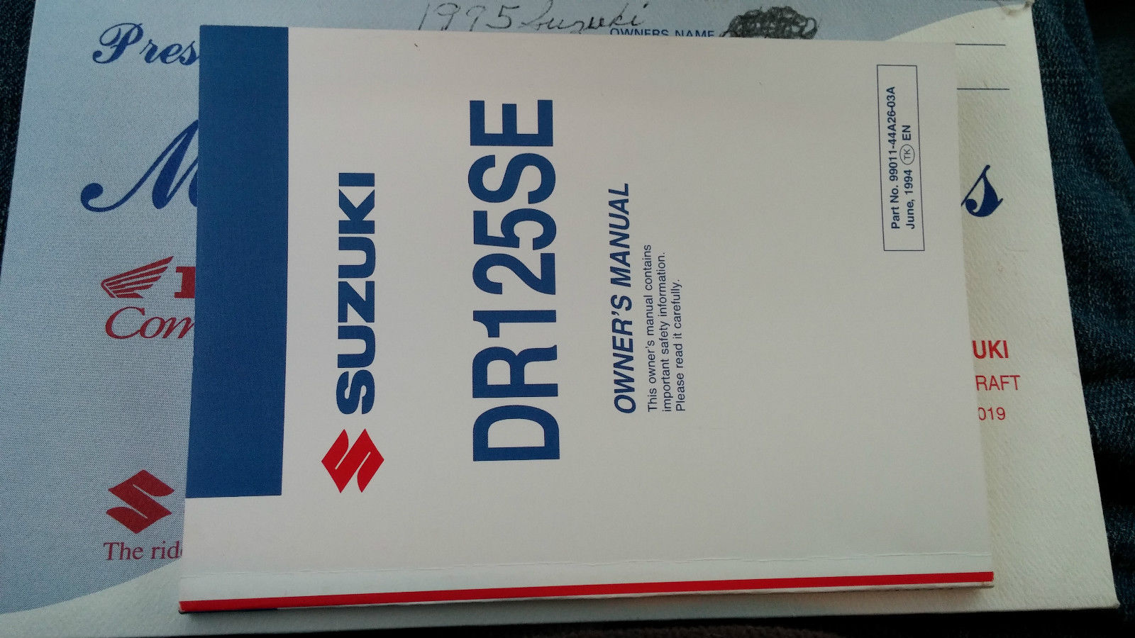 This is a perfect 1995 Suzuki DR125SE with 2. 00 original miles!!! The bike has always been garage kept and maintained. NEVER off-road a day in its life. This bike needs nothing. Fully insured. licensed with clean Nevada title. Street legal. Gets 75 mpg. Features electric start. high/low sealed beam head light. tail light. turn signals and horn. Has new high dollar sealed battery. like new 70/30 tires and Heavy Duty inner tubes. This bike would make an excellent commuter bike. MSRP when new was $3. 49. Comes with factory Suzuki owners manual. service manual and two keys. Always adult owned.