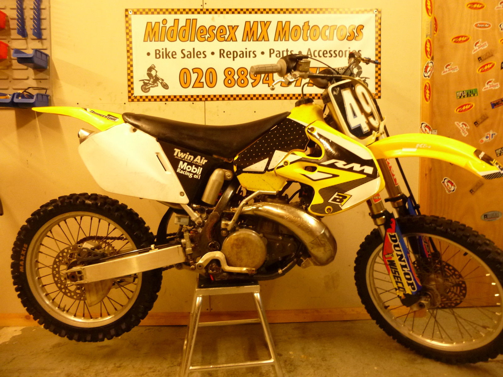 this rm 250 also has a full fmf fatty exhaust. jetted and ported carb with red breather hoses. top and bottom tag triple clamps. fly bars and tag pad. bend back clutch and brake leavers. fork air bleeders. new gear box oil putoline light gear oil. new anti freeze. new brake fluid ready to ride please call 0208 894 3777 or 07917 959 976 ??1595ONO