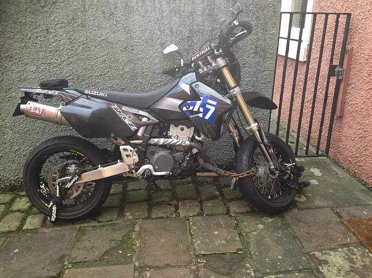 DRZ 400 SM. 56 REG IN BLACK. 10. 00 MILES. FULL STAINLESS YOSHI EXHAUST. BRAND NEW TYRES JUST BEEN FITTED. BRAND NEW CHAIN AND SPROCKETS JUST BEEN FITTED. FULL SUZUKI DEALER SERVICE INCLUDING MANUAL. CAMCHAIN TENSIONER AND HAS JUST BEEN SHIMMED. A FAULTLESS EXAMPLE WITH 7 MONTHS MOT. MAY P/X 600 BANDIT. IF IM TOO FAR AWAY ARRANGE YOUR OWN COURIER TO COLLECT IT FOR YOU.