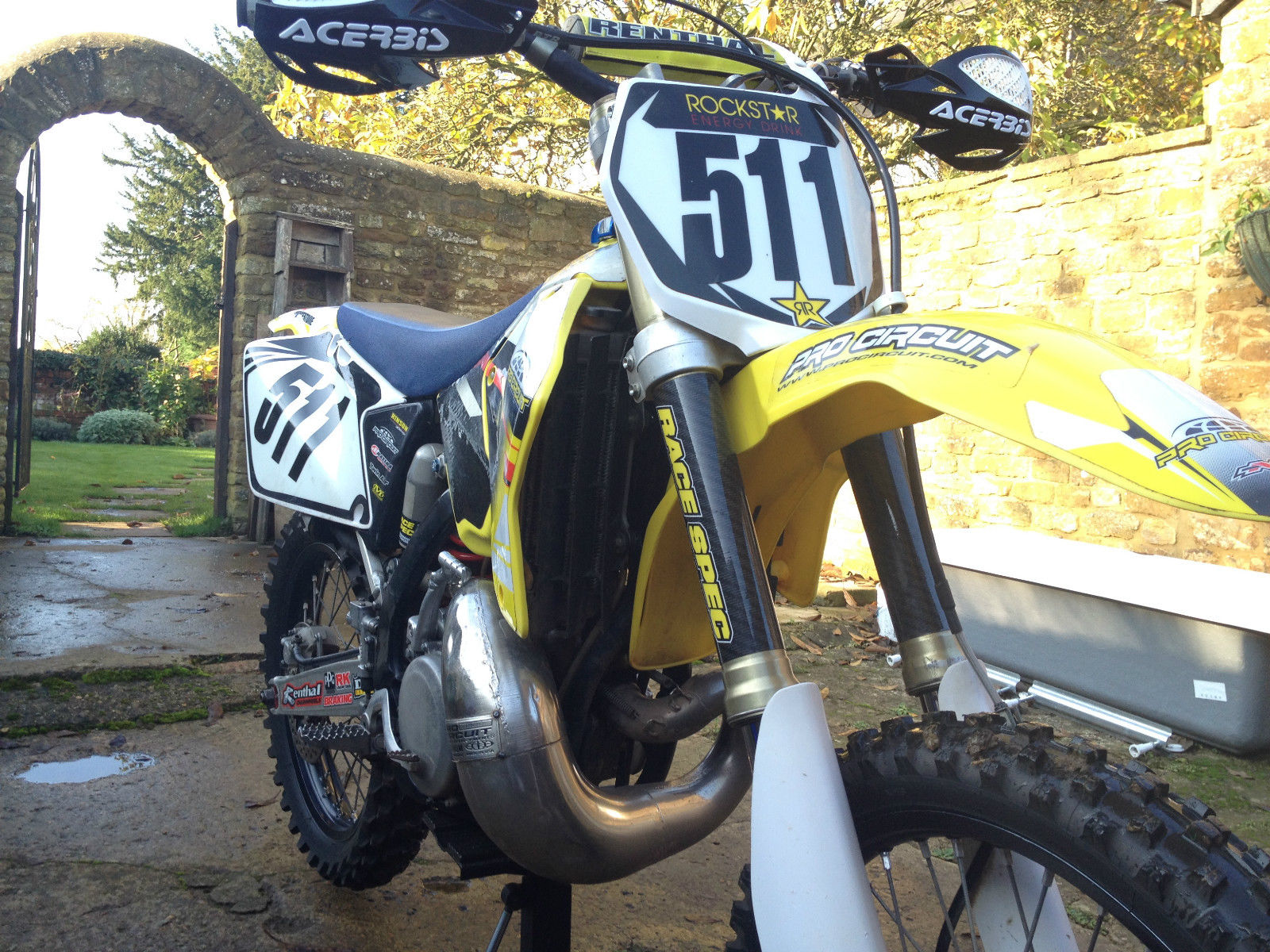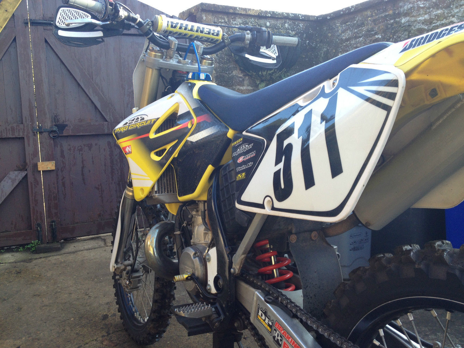 Hi and welcome to my auction. For sale is my 2008 Suzuki RM 250 in great condition. This is one of the last 250 2 strokes made by Suzuki. Manufactured in 2008 and bought new in 2010. in effect making the bike only 4 years old. I bought the bike 12 months ago and fell in love with it the moment I rode it. Unfortunately (for me) motocross hasn't worked out. This bike is AWESOME. Fantastic power and power delivery combined with sublime handling make this bike stand out from the rest; I still couldn't wait to get back on this bike after riding a few friends brand new 4 strokes. Nothing beats holding a 250 two stroke wide open. couple that with the fact this bike handles like a dream and you're in for some serious fun! The bike is set up for a 10 3/4 stone inter/expert rider with BRAND NEW front and rear springs installed and set up by Race Spec in Tewkesbury. Both shock and front forks have been re-valved to suit. Superb!The bike also benefits from the following:New Renthal front and rear sprockets. New heavy duty chain. New braided front brake line. New front and rear pads. New RFX gear lever. New Michelin Starcross MH3 front tyre. New Clutch cable. New Renthal grips. Also. Pro Circuit expansion pipe. Renthal Fat bars. Powder Coated frame. Black Wheels. All the above was done to make the bike as easy to ride as possible while I was recovering from surgery. The bike is fantastic but due to complications with the surgery I can't last more than 5 or 6 laps at race pace. This is the most difficult/reluctant decision that I have ever had to make but I can't kid myself any longer so no more motocross for me (at least for now). which leaves this brilliant bike sitting in a garage. It deserves to be ridden. For any further info please call me on 07881 274642. The bike is advertised elsewhere so reserve the right to end the auction at any time. I am in no real hurry to sell so no silly offers please. This really is a brilliant bike and deserves a good new home. Thank you very much for looking. Sam. CASH on collection ONLY please.