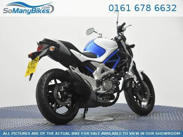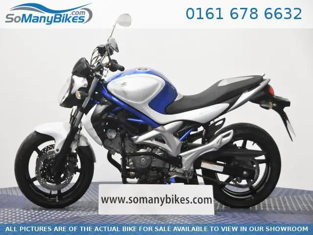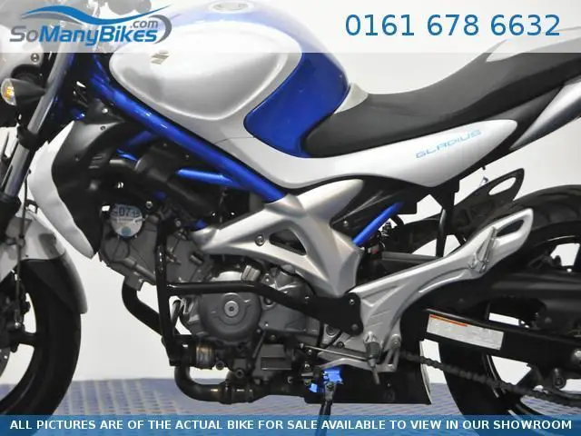 Fully HPI Clear. UK Bike. Includes owners manual and service book 2009 (09) Suzuki SFV Gladius. with only 11116 miles. Comes with Owners Manual and Service Book. with Service History and 1 owner from new. this Bike has Engine crash Bars fitted and is in very good condition. Why not come down for a test ride. 10 DAY MONEY BACK GUARANTEE *** 0% FINANCE AVAILABLE *** Part Exchange Welcome! Visit us 7 days a week 0% and 10 day money back guarantee subject to TCs visit somanybikes. com or speak to our advisors on 0161 713 3219 Nationwide Delivery to your Door. 10 Day Money Back Guarantee. 0% Finance Available. Part Exchange Welcome! Visit us 7 days a week or visit www. SoManyBikes. com or speak to our advisors on 07543543543.