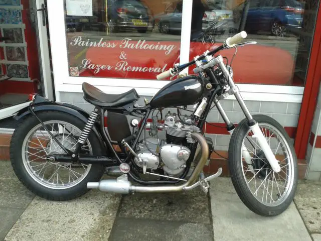For sale due to buying new house!! My gorgeous 1960. Triumph Bobber. nder cotton dustsheets all winter in my garage. idden on sunny days so not many times lol. ery reliable and sounds great with stainless pipes with aluminium end cans. lovely solid built Motorcycle. lways attracts a great response and admiration. as had a new battery. park plugs. igh resistance 12v coil. nbsp;and recent oil change. am open to serious offers. o scammers. imewasters or canvassers pls. ing or text me on 07803336427. or details or more pics:i reserve the right to end the auction at any time. he winner must deposit ?100 into my paypal straight after auction then collect the bike within 1 week with the remainder of payment in cash. ot has just expired but the bike has been ridden a handful of times since last Mot so will fly through the next. ut if I get what im happy with I will put a new Mot on. Good luck and happy Bidding!!