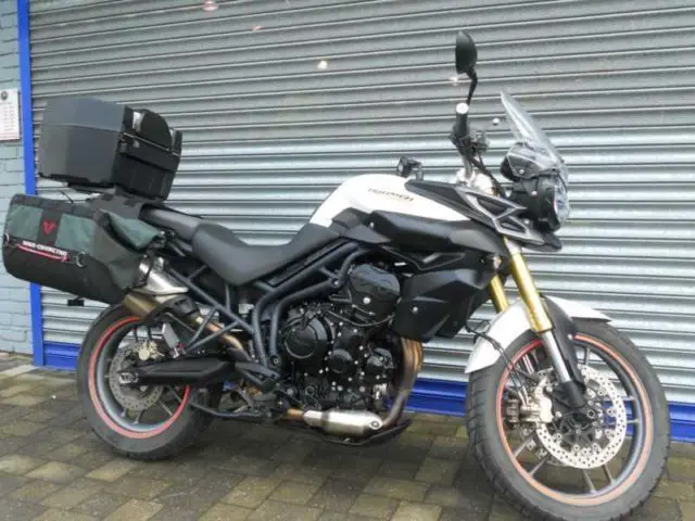 2014 Triumph TIGER 800 ROAD ABSA one owner 2014 Tiger 800 ABS in Crystal White with 10263 miles on the clock. Full service history with the 6K service done on the 18/09/2014 Accessories fitted include heated grips. top box. centre stand and SW-Motech Dakar soft panniers. A great middle weight adventure bike ready to tackle any journey. ideally suited both for long road adventures and everyday functionality. Available from Jack Lilley - Ashford on (01784) 420421 / sales@jacklilley. com