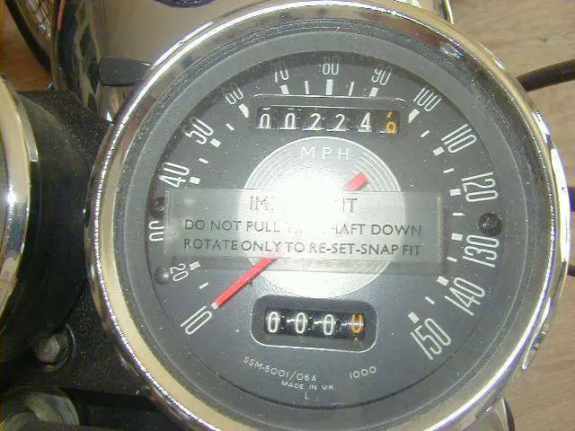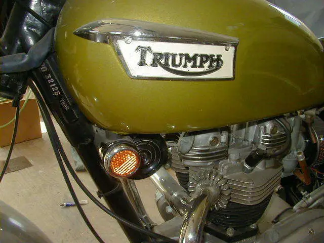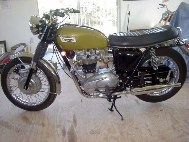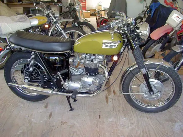 A 1970 Triumph that spent its whole life covered up in a garage. only 224 miles on it. Gas tank was repainted. everything else is original. Last started about 1984. Owners manual is missing. keys. title and tool set all there. Some of the photos were taken before I dusted the bike off. Comes with an NOS new in box Lucas "blue top" battery never filled. left side front brake chrome panel (original has some stains) 2 tank knee pads. needs new fuel line. it has hardened and shrunk.