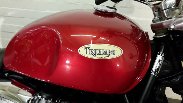 Triumph Legend TT. in red on the 98/S plate and covered only 12906 miles. This is a genuine one private owner from new bike with chrome grab rail and rack. all books and every receipt for any servicing and parts over the last 17 years. She is in great all round condition. very long MOT. runs and rides very well. A traditional old school bike. becoming very popular and collectible. Call for more details 07824 831442 or 07767 291077