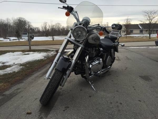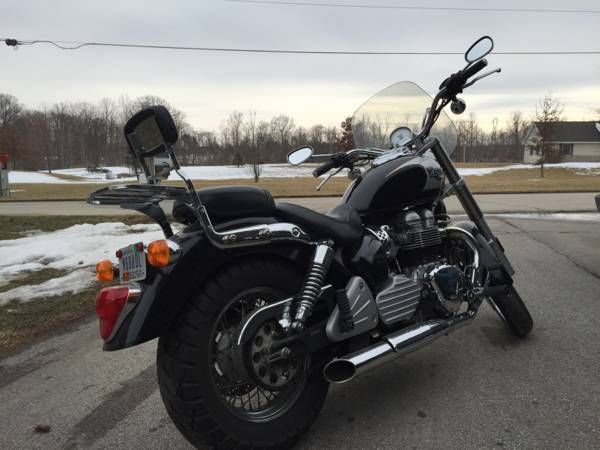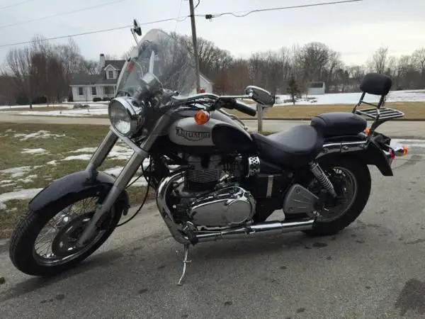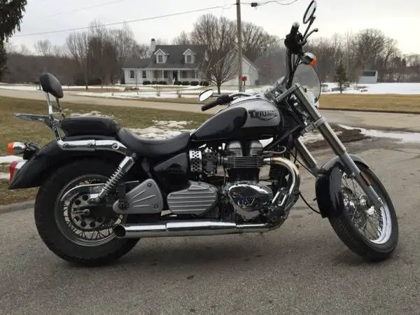 Here we have a 2001 Triumph Bonneville America for sale. This bike runs great! Has newer tires. Detachable saddle bags. Have always used full synthetic oil. Aftermarket exhaust. Also have the original exhaust and other misc. parts.