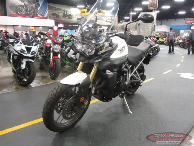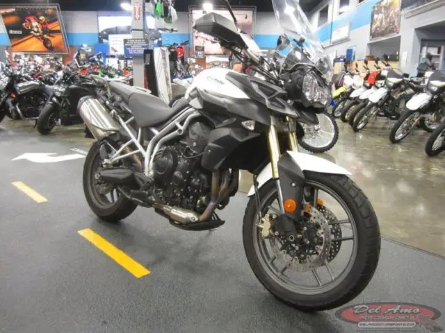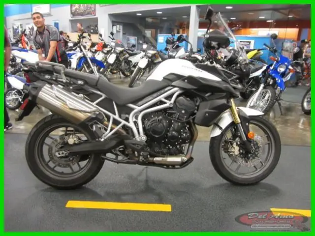 Yesenia Castillo 888-863-9569 2500 Marine Avenue Redondo Beach California 90278 2011 Triumph Tiger 800 Vehicle Information Year: 2011 Make: Triumph Model: Tiger Condition: Used 1 of 5 View Large Images Credit Application Directions to Dealer Contact Us Options and Standard Features Basic Information Type: Standard Mileage: 10964 Title: Clear Color: WHITE Accent Color: WHITE Condition: Used VIN: SMTE05BF0BJ492628 Stock Number: C92628 Trim: 800 Model: Tiger Make: Triumph Year: 2011 Engine Bore (in): 3. 11 Bore (mm): 79 Carburetion Type: Fuel Injected Compression Ratio: 12. 0:1 Cooling System: Liquid Cylinders: 3 Engine Size (cc): 800 Engine Size (ci): 48. 7 Engine Stroke: 4-Stroke Fuel Capacity (gal): 5 Fuel Injector Fuel Type: Gas Horsepower (kW): 70. 1 Horsepower RPM: 9300 Starter: Electric Stroke (in): 2. 44 Stroke (mm): 61. 9 Torque (Ft Lbs): 58 Torque (Nm): 78. 6 Torque RPM: 7850 Valve Configuration: DOHC Valves: 12 Valves Per Cylinder: 4 Drivetrain Number Of Speeds: 6 Primary Drive (Rear Wheel): Chain Transmission: Manual Primary Drive (Engine / Transmission): Gear Chassis & Suspension Frame: Steel Front Adjustable Fork Pre-Load Front Suspension Brand Name: Showa Front Suspension Size (in): 1. 7 Front Suspension Size (mm): 43 Front Suspension Type: Inverted Fork Front Travel (in): 7. 1 Front Travel (mm): 180 Number Rear Shock Absorbers: 1 Rear Adjustable Shock / Spring Pre-Load Rear Suspension Brand Name: Showa Rear Suspension Material: Aluminum Rear Suspension Type: Twin Sided Swing Arm Rear Travel (in): 6. 7 Rear Travel (mm): 170 Brakes Brake Brand Name: Nissin Front Brake: Dual Hydraulic Disc Front Brake Diameter (in): 12. 1 Front Brake Diameter (mm): 308 Rear Brake: Hydraulic Disc Rear Brake Diameter (in): 10 Rear Brake Diameter (mm): 255 Safety Headlight Fuel Level Warning Rearview Mirrors Temperature Warning Comfort Digital Instrumentation Trip Odometer Specifications Body Material: Plastic Front Tire (Full Spec): 110/80 ZR 19 Front Tire (Inches): 19 Front Tire Aspect Ratio: 80 Front Tire Speed Rating: Z Front Tire Width: 110 Front Wheel Width (in): 2. 5 Fuel Capacity (liters): 18 Height (inches): 53 Height (mm): 1348. 7 Length (mm): 2212. 3 Rear Tire (Full Spec): 150/70 ZR 17 Rear Tire (Inches): 17 Rear Tire Aspect Ratio: 70 Rear Tire Speed Rating: Z Rear Tire Width: 150 Rear Wheel Width (in): 4. 25 Seat Height (inches): 31 Tube / Tubeless: Tubeless Wet Weight (kg): 209. 6 Wet Weight (lbs): 462 Wheelbase (in): 61. 2 Wheelbase (mm): 1554. 5 Wheels Composition: Aluminum Width (inches): 31 Width (mm): 795 Speedometer Tachometer Other Information Chain Guard Exhaust Guard Fork Guards Apply Now Secure Credit Application Applying for a vehicle loan online is one of the quickest and easiest application methods. Our secure application is easy to complete. all you need are a few personal and employment details. Contact Del Amo Motorsports 2500 Marine Avenue Redondo Beach California 90278 View Map Ask for:Yesenia Castillo Toll Free:888-863-9569 Contact: Contact Us Terms Placing a Bid: Your bid constitutes a legally binding contract to purchase this vehicle. Please do not bid if you're not seriously interested or financially able to purchase this vehicle. Please read eBay's User AgreementDel Amo Motorsports reserves the right to. Obtain and verify the registered information of all users who bid on this auction. Cancel any and all bids at our discretion. or end the auction early if necessary. Bidders Age: You must be 18 years of age or older to Bid. Special eBay Bid Retraction Rules: Please read eBay's "Retracting a Bid" If you place a bid before the last 12-hour period of the auction: You may retract that bid before that last 12-hour period but only for exceptional circumstances. You will not be allowed to retract that bid during the last 12-hour period of the auction. If you place a bid during the last 12-hour period of the auction: You will be allowed to retract the bid for exceptional circumstances but only if you do so within one hour after placing the bid. Funds & Financing: For help in arranging for a Pre-Approved loan or for any questions please e-mail or phone Yesenia at888-863-9569 prior to bidding. Buyers Inspection: Del Amo Motorsports has done our best to disclose all information known about this vehicle for auction. Del Amo Motorsports welcomes a buyers inspection. If you plan to have a buyers inspection. please make sure you inspect the vehicle prior to the auction ending. Inspection fees if any are Buyers responsibility. Representations and Warranties made by seller: This vehicle is being sold "as is". Manufacturer's warranties may still apply. Extended warranty may be available. e-mail or phone Yesenia at 888-863-9569 for details. No representations or warranties are made by seller. nor are any representations or warranties relied upon by bidders in making bids. Taxes and Registration fees: Out of state buyers are responsible for all state. county. city taxes and fees. as well as title service fees in the state that the vehicle will be registered. All taxes and fees must be paid in full in order for vehicle to be titled and registered. Title Information: Vehicles titles may be held by banks or lenders as collateral for loans. In many cases there is a delay in receiving the original instruments up to 21 days from the time we pay a vehicle off. While we usually have all titles in our possession at closing. there are occasions where we may be waiting for them to arrive. If payment is made by cashier's or personal checks we will hold all titles for 10 days or until funds have cleared. Shipping & Delivery: All shipping charges are buyer's responsibility. Del Amo Motorsports will help with shipping arrangements but will not be responsible in any way for claims arising from shipping damage!Licensed Carriers are generally insured for $3. 00. 00. 00. We assume no responsibility for damages incurred after the vehicle leaves our showroom. All shipping arrangements are provided by De