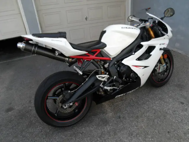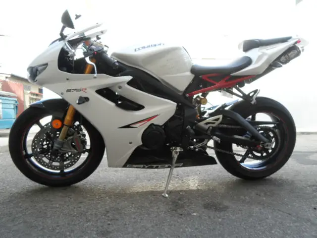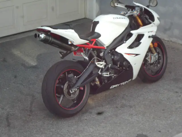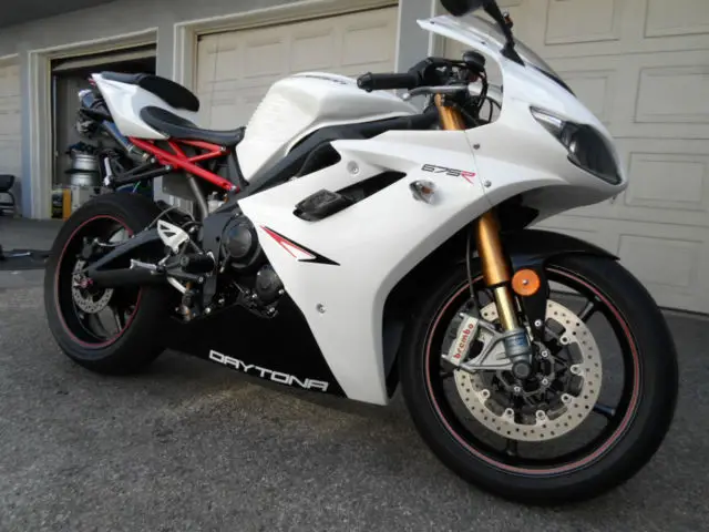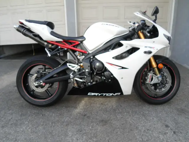 I have a beautiful Triumph Daytona675 R model. All the bells and whistles.Ohlins package, rembo Mono Bloc calipers. Speed shifter.CustomBlack Widow exhaust makes this bike roar!T-rexsliders. Pro grip tank pads.Very low miles and last yearwith undertail exhaust. Very stylish. Salvage titleregistered and upto date with tags. Can take anywhere without problems. Only 6300 at the moment.This bike is faster than R6 and handles very well. This bike looks very new. Tires have a lot ofmileage to go. You get a lot bikewithlap counter as well. Can help ship with U-ship.Don't fool yourself this bike looks brand new.