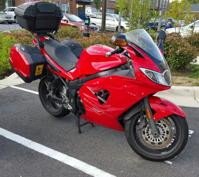 This is a well maintained Sport-touring motorcycle with heated grips, BS and aux 12 outlet in fairing, olor matched side bags and top case. It has all the British character you want from the inline triple with the comfort you need to lay down the serious miles with standard pegs and handle bars mounted up and back. Even with the 30K miles it is still a nice example of this three-cylinder mark.