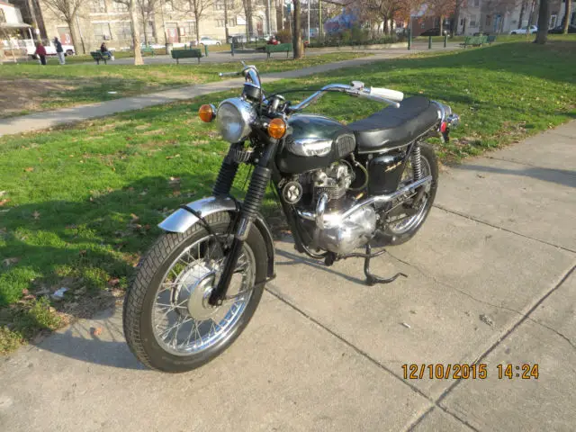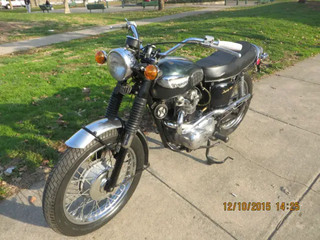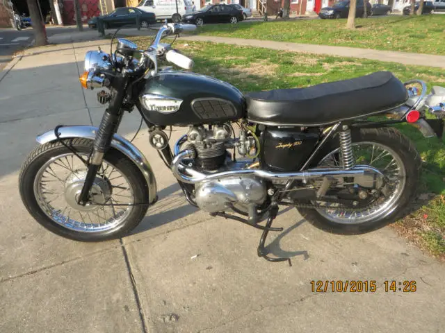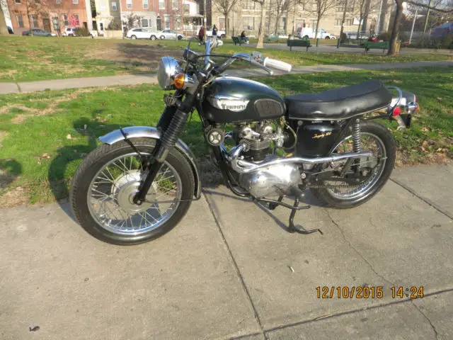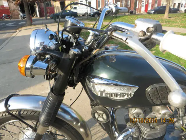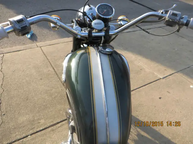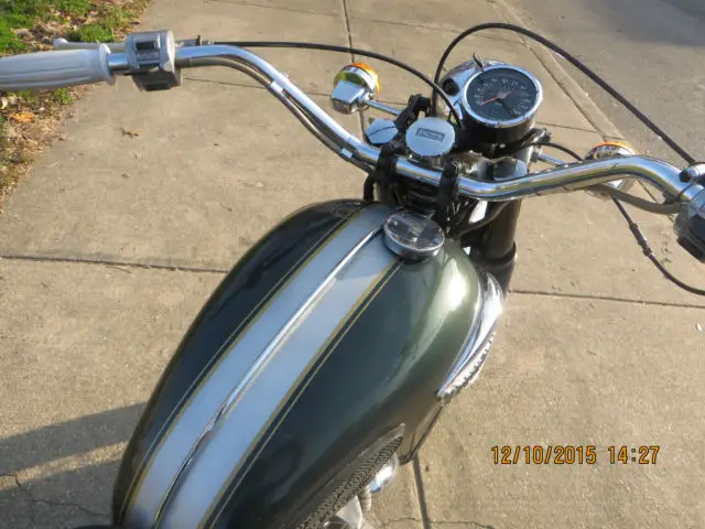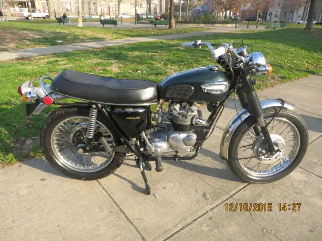 1971 Triumph T100c 500ccMatching motor-frame-title numbersmotor rebuiltmade to copy the T100c Ann Margert rode in "The Swinger"-new valves/guides/springs-new copper head gasket-new pistons/rings/cylinder bore-new oil pump-new gaskets/seals-new main bearings-sludge trap removed/cleaned/new plug-new rod shell bearings-new clutch basket/clutch/primary chain/adjuster slipper-new trans needle bearings/thurst washers-new fork tubes / seal / seal holders / fork gaiters-new exhaust-new amal premier carb-new battery_new seat cover-new grips-new steering bearings-new frame paint / utherthane clearcoat-new satin green laquer paint-new bulbs-all lights work as should-tail light-brake light-turn signals-headlight high/low / pilot light-horn / highbeam flash work