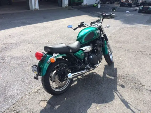 Really nice 2001 Triumph Legend TT in British Racing Green! Has typical minor signs of age, uns and rides perfectly! Completely stock aside from fork covers and handle mounted authentic Triumph mirrors. 3 Cylinder, 00cc engine with a super unique sound. Throaty when uponed up, uiet at speed. See the video link below for a clip! Bid with confidence, riced to sell. Don't hesitate to ask questions and thanks for looking!~Also listed on other forums, o the Triumph could be sold before auction's end! If you'd like to make an offer, lease contact me.https://youtu.be/JhKfmTWaaqk