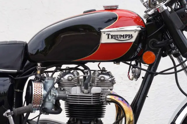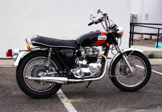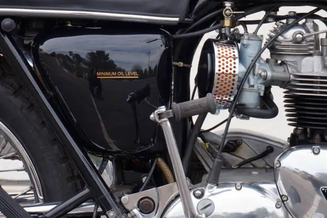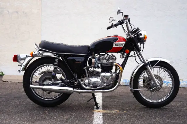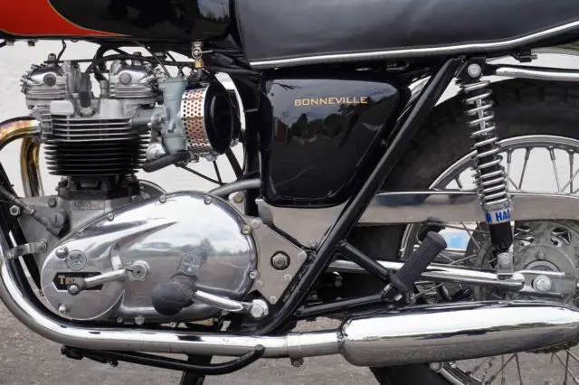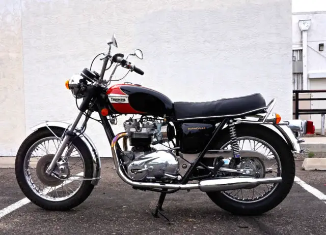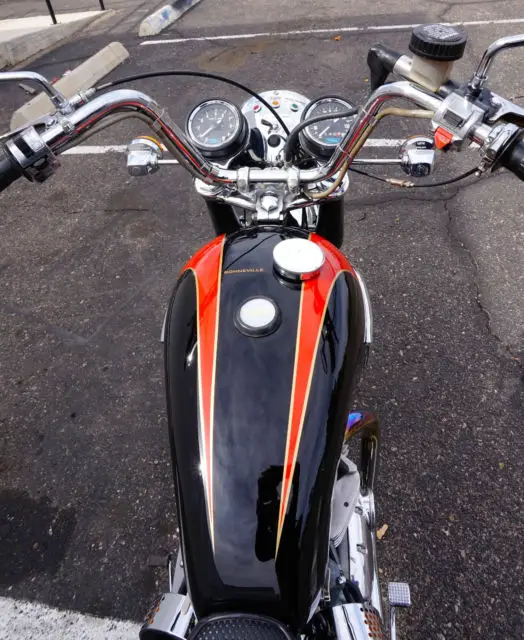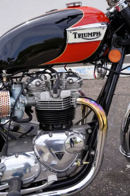 My Bonneville has only 6814 actual miles on it and only 241 miles since restoration. It runs and shifts perfectly, verything rebuilt except lower end. Head was rebuilt with new lightweight springs and retainers, ew valves and guides. Cylinders are standard bore with new pistons and rings. Absolutely no mechanical issues, o leaks or other problems. Ready to ride. Correct new tires front and rear, ee pics. All chrome has been redone including front and rear fenders. Beautiful professionally painted black and red tankpinstriped in gold, ainted with Duponturethane base coat clear coat. Flawless. Tank is sealed and has never had rust inside. Mirrors are Victory Vegas, vast improvement over the old stock Triumph mirrors.Brand new '60's retroside covers and air cleaner kits installed and really improve the looks of the OIF Triumphs. included are the original air cleaner boxes filters with thesale andare in excellent condition.Pictures were taken today. Bikephotographedfrom every possible angle to show the quality of this build.A $200 PayPal deposit is required at end of auction; balance to be made by bank wire transfer or cash in person within 5 days of auction end. Buyerresponsible for shipping and is responsible for all shipping costs. Feel free to ask any questions, will respond as soon as I see the question.Thanks and good luck.