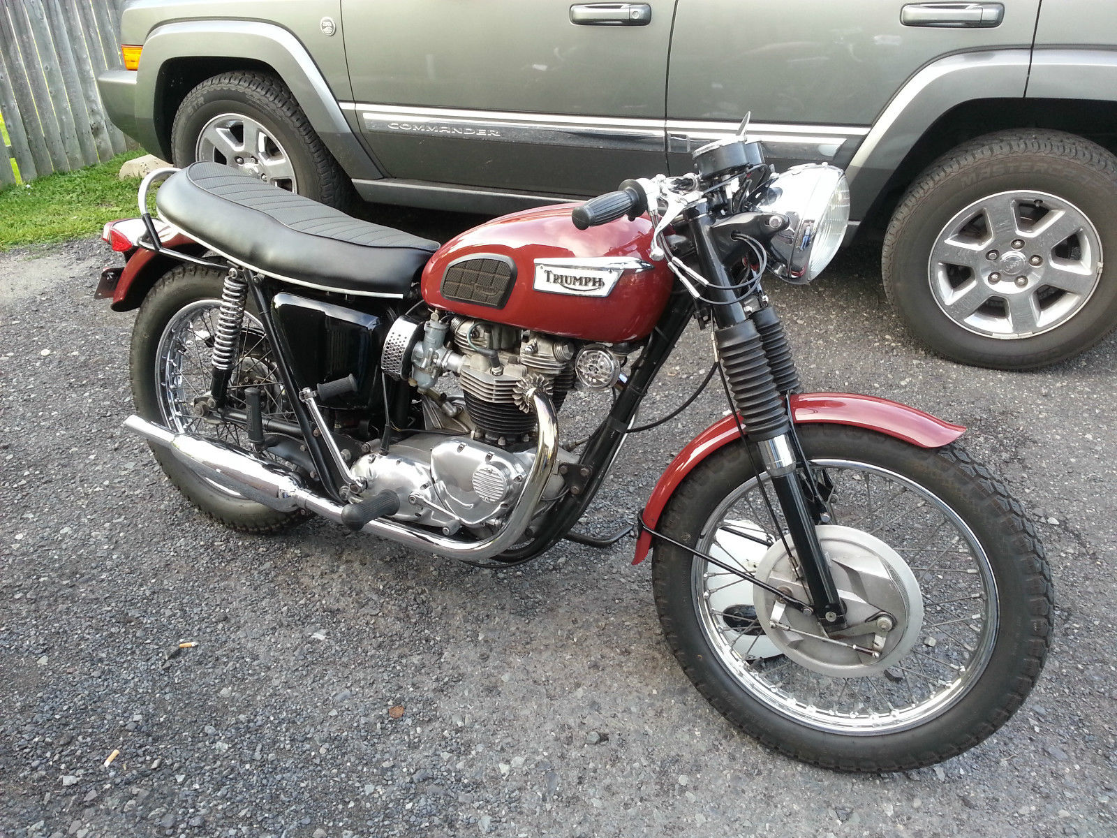 THIS 1970 TRIUMPH TR6 IS ONE OF A KINDHAS BEEN TASTEFULLY RESTOREDHAS A BONNEVILLE HEAD WITH TWIN AMAL CARBSI HAVE THE STOCK SINGLE CARB TR6 HEAD IN EXCELLENT CONDITION THAT GOES WITH BIKEFITTED WITH A T-140 5 SPEED TRANSHAS NEW PIPES. NEW TIRES. NEW PAINTTHIS TR6 SOUNDS VERY HEALTHYRUNS EXCELLENT. EASY TO STARTBIKE IS RIDDEN REGULARLY AND PROVEN DEPENDABLEENGINE AND FRAME ARE NUMBERS MATCHING