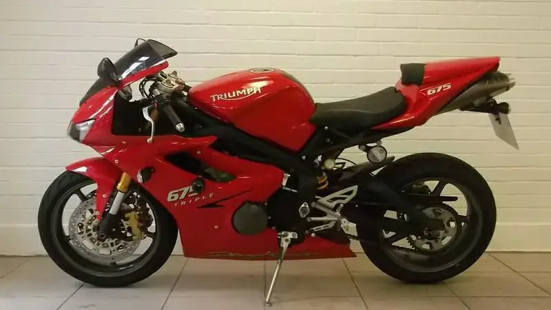 2008 Triumph Daytona 675WAS 5. 99 NOW ONLY 4. 99The Triumph Daytona 675 has put Hinckley firm back on the shortlist of many UK sports motorcycle riders. A real alternative to a Japanese four cylinder 600cc sportbikes. Silky. compact handling. allied to kickass engine power and a howling exhaust note make the Triumph Daytona 675 a real winner on the road. or track. The Triumph Daytona 675' three cylinder engine is a masterpiece of compact simplicity and features a stacked gearbox. close ratio gearbox and high compression ratio. Razor sharp look and razor sharp handling too!?ˆ? Crash Protectors -?ˆ? Seat Pod -?ˆ? Tank Protector -?ˆ? V5 Registration Document -Available from Sheffield Motorcycle Centre Ltd (USED BIKES) on / eshop@smcbikes. com