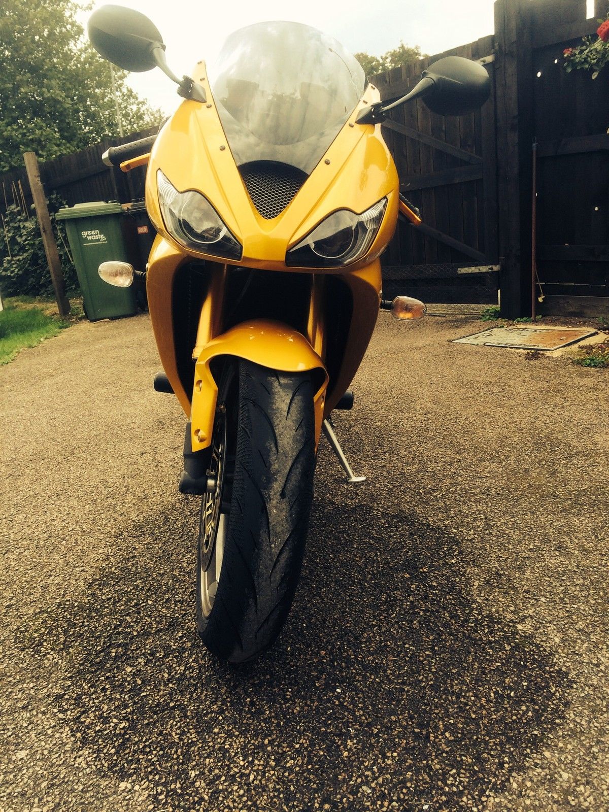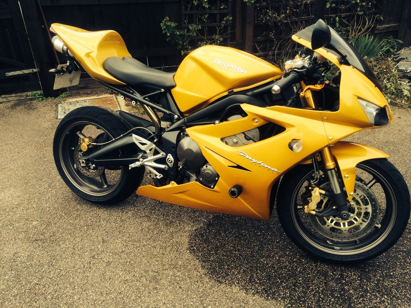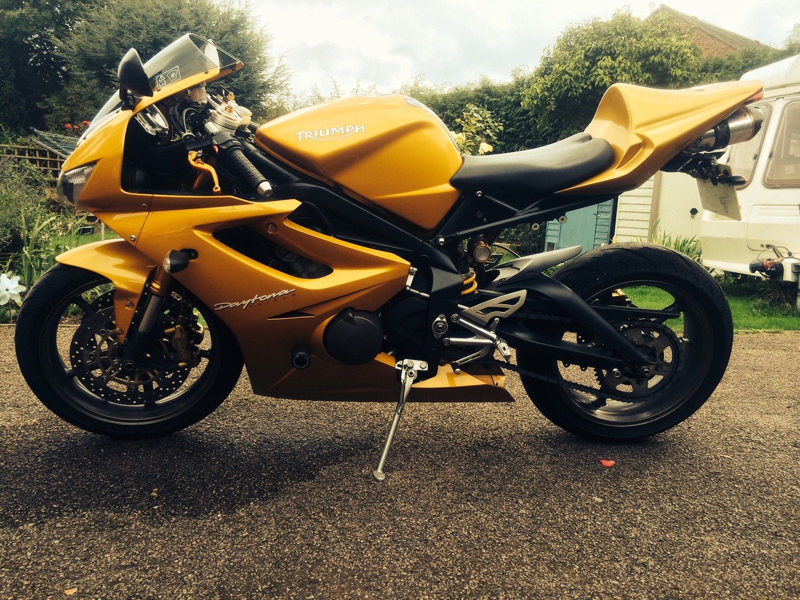 Here is my reluctant sale of my loved Daytona 675. This bike is truly exceptional. rides amazingly. sounds amazing and looks outstanding. This really is the king of 600's. Just look at all the reviews in any bike magazine. I've owned it for 2 years now and enjoyed every single moment. Still trying to convince myself to keep it. It has mot till February 2015 would fly through it's next mot. ( would consider putting a years ticket on it)Comes with virtually new maxxis tyres. was brand new when I bought the bike. so only covered 2000 miles. Has a single seat unit fitted at the minute. it makes it stand out a lot more and looks good! The colour is a shade out (4 different shades of this colour)Still have the original seat unit and seat. Both are still in good condition. Has a two brothers exhaust fitted. sounds absolutely sweet! It is pretty loud. and does annoy your mates behind you! Also comes with a scorpion end can. Comes with a tail tidy. I wouldn't say it's the best tail tidy as it's a bitch to set it up evenly. still looks good. never seen another 675 with it fitted and stumpy rear indicators. Still have original plate holder and rear indicators. I also have a box full of spares like. head stock. rear sprocket. ignition barrel. half a set of SES rear sets and plenty of other bits and bobsI also have a set of part worn super corsa's what I'll chuck in. I've recently had it in at my local triumph dealers for a recall on the regulator/rectifier. the techs said the bike was all sweet engine wise and condition. Still has it's distinctive whistle when rev'd (when buying the bike I was told to listen for the whistle as no whistle supposedly means a dead engine)I was sometimes struggling to change it up from 2nd to 3rd so they adjusted the gear linkage and it's been spot on ever since. It now rides faultlessly. Last year I had to replace the intake air temp sensor. so it's had the updated air box lid and wiring loom and new sensor at a cost of £200. Beginning of the year i fitted a new battery. Comes with the original triumph hand books and service book. the original 2 keys and service history and Carol Nash smart water. It even still has the running in stickers on the tank. This bike is genuinely mint! Washed and polished after every ride. chain lubed after every 2 rides out. Has a slight chip on the tank and the rear subframe (see photos) these are really tiny marks. Any inspection is welcome. ask as many questions as you like I'll try and answer as soon as. Cash on collection.