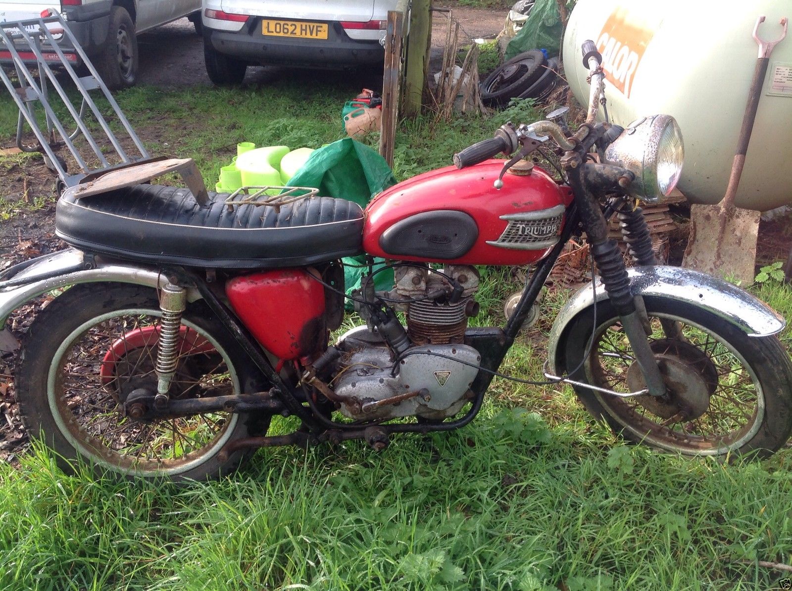 A 1960 3TA triumph in need of restoration. matching engine and frame numbers. ith old VE60 registration book. 2owners good reg (--- ALX) Is Alex your name. Please look at photos . its missing. It has great compression and all gears select. Tank is solid with no dents . ear stainless mudguard I think is the wrong one. Bidders with less than 20 feedback will be omitted unless you leave your landline number. Please no PAYPAL. ash . ank transfer or. . leared cheque. Viewing and collection welcome. ? think I can get it delivered for ??100 in England. No oversees bidders. ad experience.