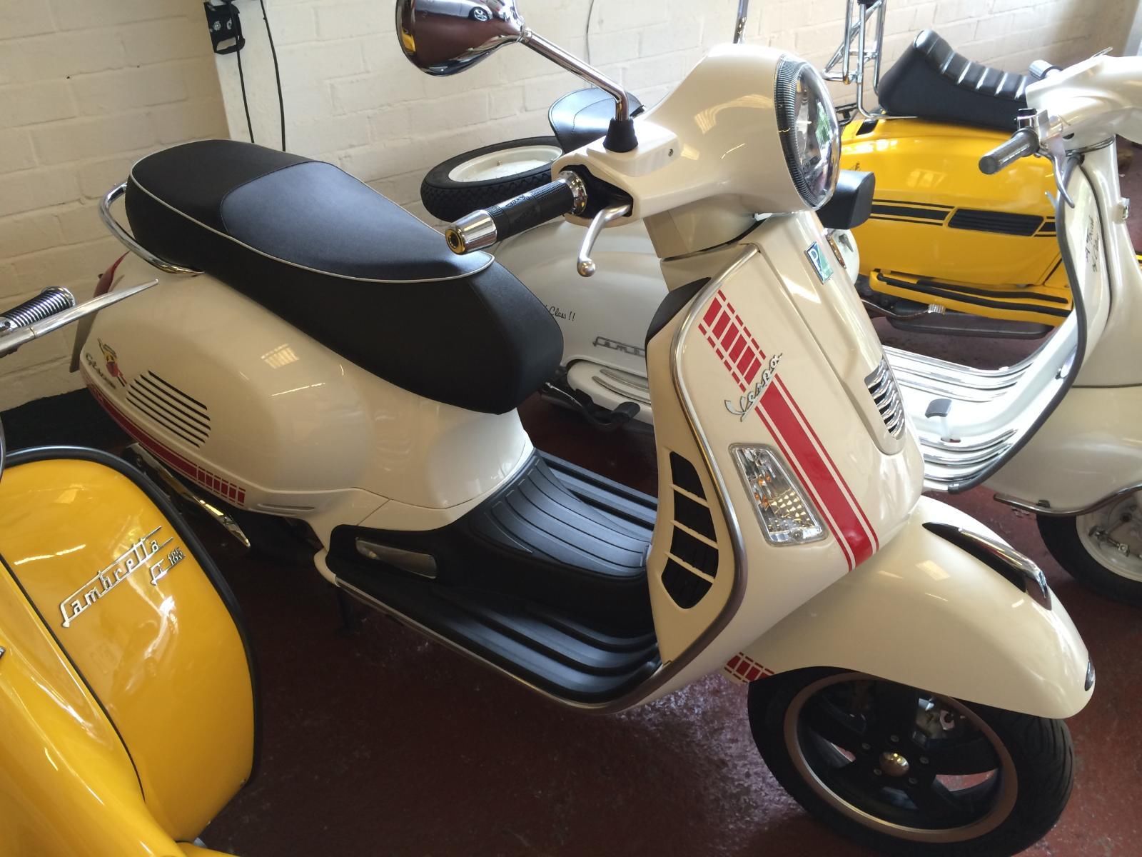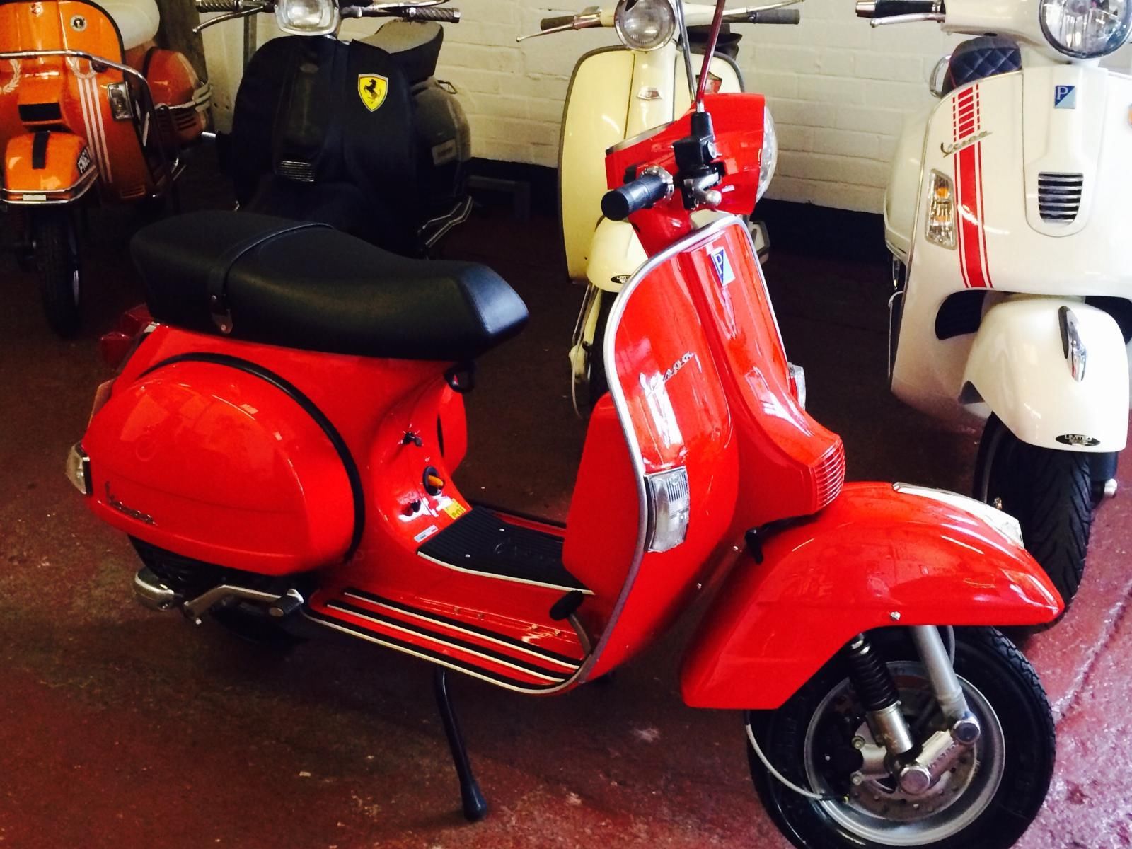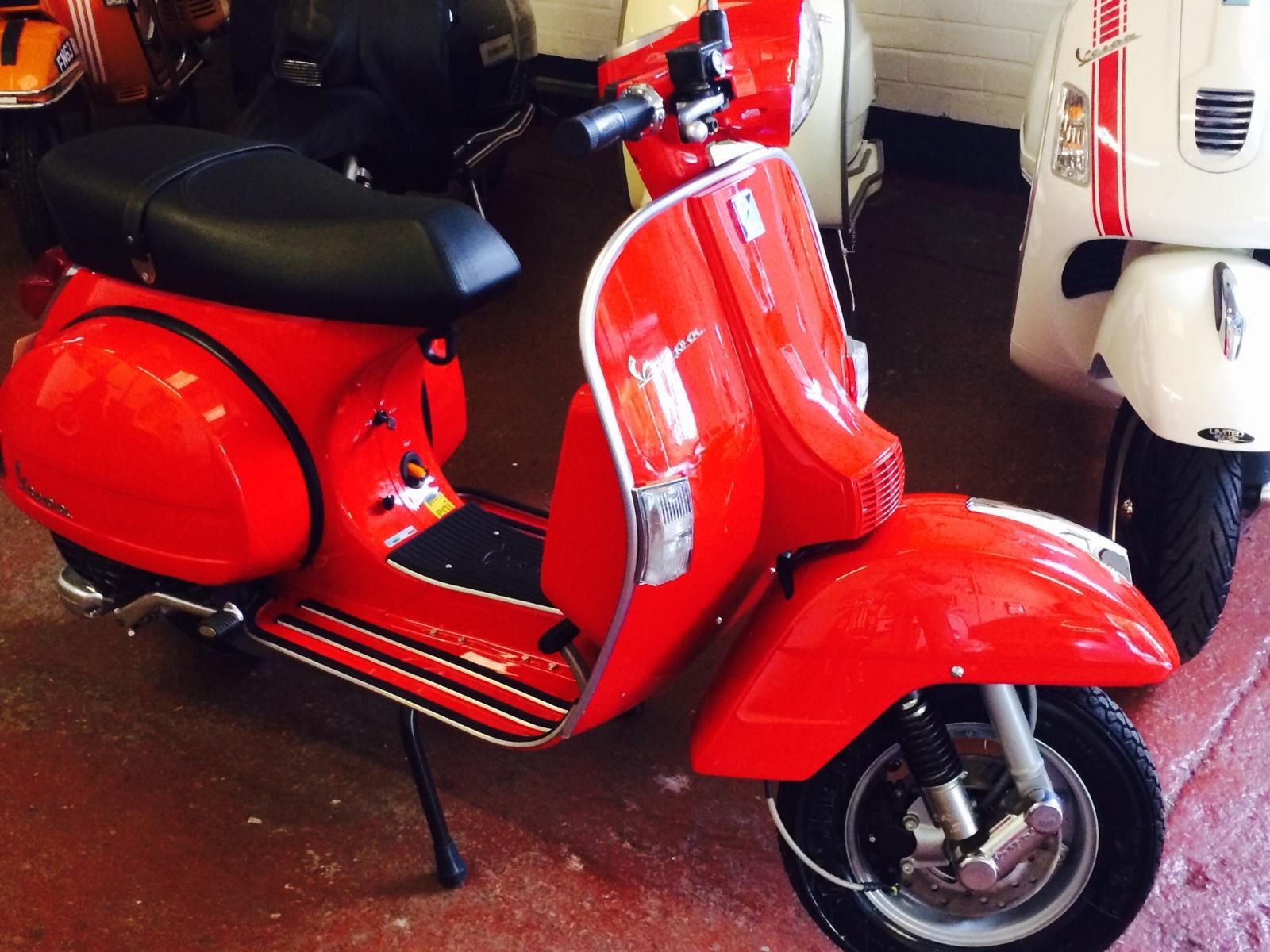 Presented in unmarked radiant red paintwork . n unmolested example of this Vespa Px 125cc. this vespa has only covered approx. 75 miles so is in as good as new condition. also in stock we have a outstanding Vespa Px 125 in ice white with full anniversary decals and covered only one mile from new £2795. also in stock 2011 Vespa GTS Super 125cc in frozen white with a one off contrasting black diamond quilted seat and black alloy wheels. fully decaled with Arbarth red racing kit £2795. " ALSO LAMBRETTAS & VESPAS WANTED ". lease tel : 07816777101 to arrange viewing