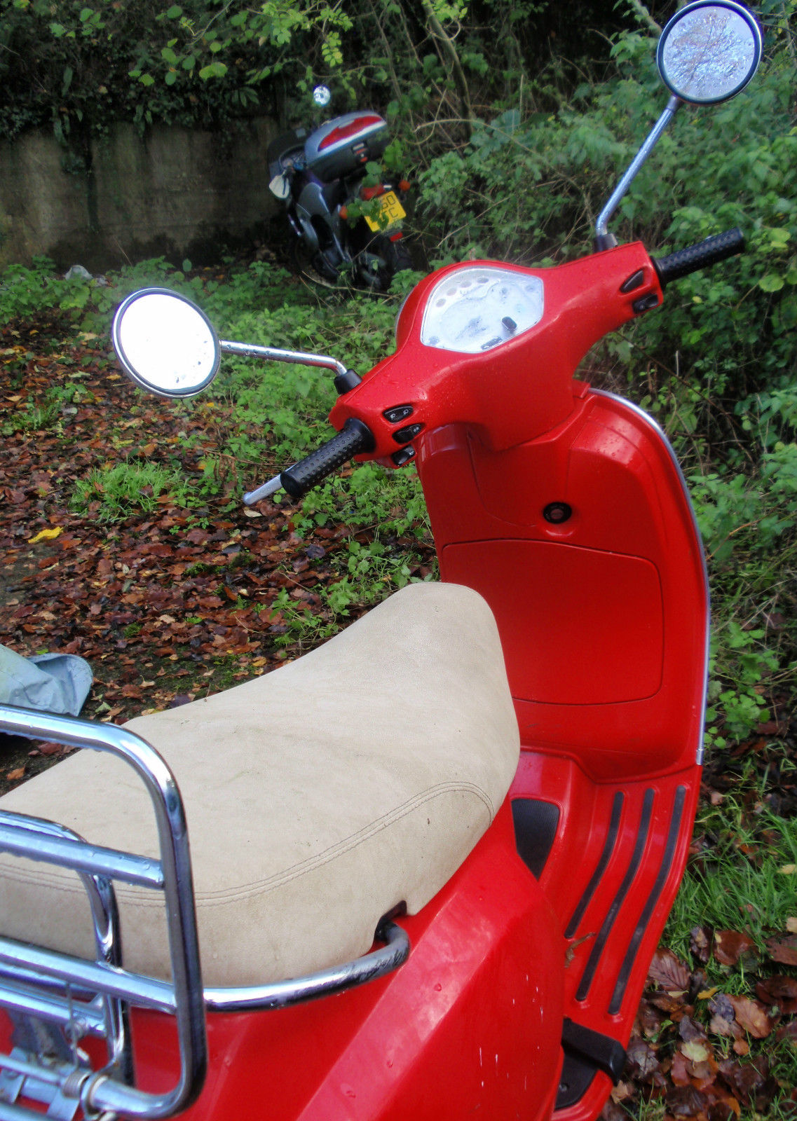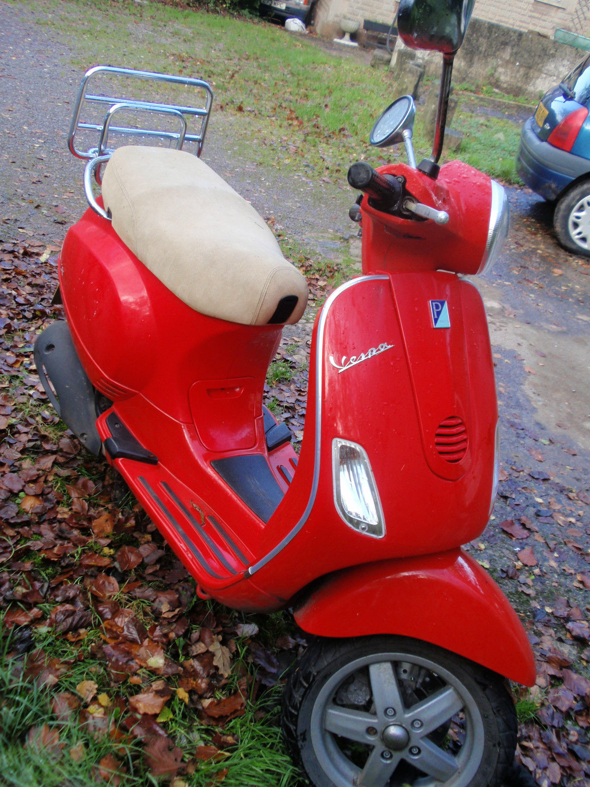 You are looking at my much loved Vespa et4. It has never let me down. except for a couple of times when the battery died. It has a battery only a year old. an exhaust only two years old and a new back tire in September. It has been regularly serviced absolutely by the book. but unfortunately. I have lost the service history booklet. so you would have to take my word for it. The last service was in September. when it had its MOT. The scratches on the side are from when it got knocked over. once in a storm and once when parked in the road. It has been kept in the drive. under a plastic cover. It is legal for a learner driver.