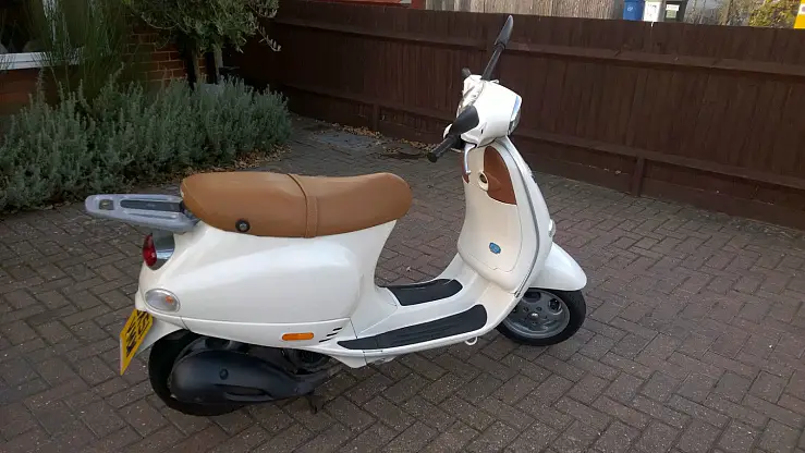 Stunning Vespa ET4 (125cc) in Limited Edition Vintage Cream colour. This scooter is offered for sale in excellent condition for its age with very low mileage of only 8. 34 miles. This is a great. reliable and nippy scooter that starts every time and runs just like a scooter with only 8. 00 miles on the clock should! Offered in the rare and much sort after Vintage Cream colour with coordinating tan coloured seat and trim. The scooter comes complete and ready-to-ride with the following accessories: Vespa branded steel keyring. nbsp;Waterproof bike cover. nbsp;Black waterproof biker jacket(size medium. nbsp;Matching trousers (size medium). ike gloves (size medium). lue crash helmet (size medium plus). Plus;A brand new battery fitted this month. OT until 31 March 2015. ood tyres and brakes. art dealer stamped service history. Will make a great learner/starter bike. commuter bike or collectors item. Genuine reason for reluctant sale. Early viewing essential - First to see the scooter will buy!CASH ONLY or Cleared funds prior to collection from near Brighton. Sussex. No silly offers or time wasters please.