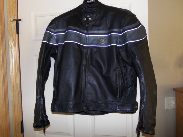 Leather Victory Motorcycle riding jacket. Great condition. Worn very little. Main front zipper was replaced shortly after it was new. Has many zippered vents. shoulder pads and zip out lining. Buyer pays shipping or to be picked up at sellers location. Pay with Paypal if purchased on line or cash if picked up at sellers location.
