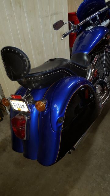 Very well maintained motorcycle, ith hard to find Corbin saddle bags, aring, nd seat, ampson exhaust, ower Commander, von tires, ll recall work has been performed, bought from the original owner, have a bunch of original paperwork, nd advertisement, long with a repair manual, riginal pipes with Victory accessory mufflers, ox of misc. parts, nd windshield. See pics for scuff on the right saddle bag, ike tie down strap broke in trailer from previous owner and scuffed paint. Chrome switches installed with the originals included. Nice comfortable bike. Any questions feel free to callor text419-345-8982. Ride it home! Ready to go! THE BIKE IS IN TOLEDO OHIO.
