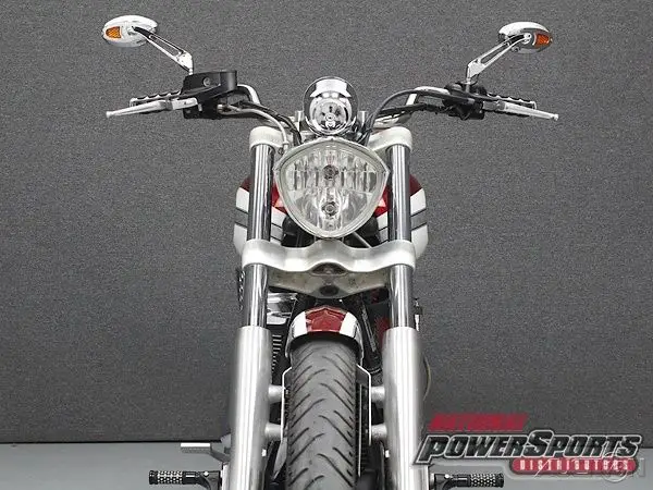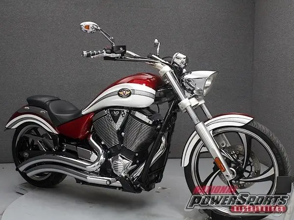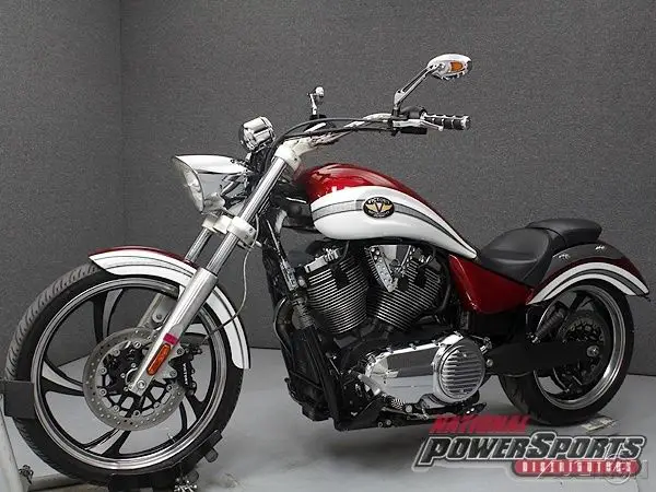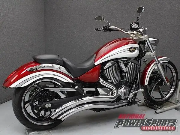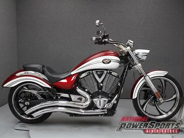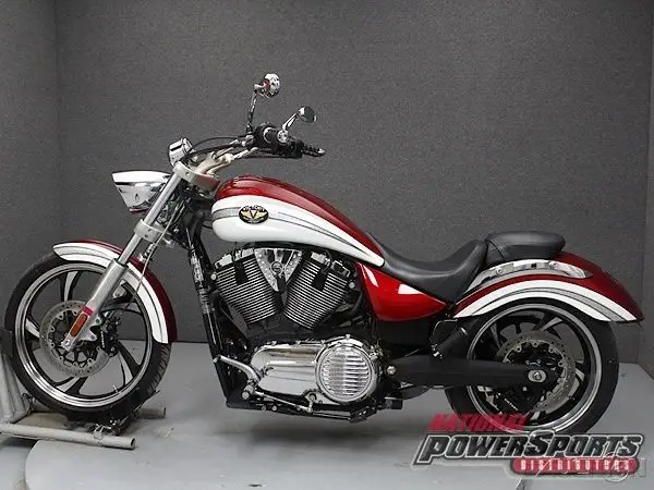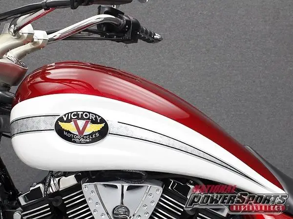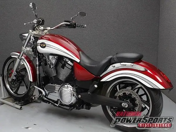 This Victory Vegas Low has been upgraded with an aftermarket exhaust, loydz II fuel controller, pen air intake with a K&N air filter, irrors with integrated turn signals, ftermarket license plate bracket, nd Kuryakyn grips. a 100ci v-twin engine with a 6-speed transmission, he Vegas puts out 85hp and 106 foot-pounds of torque. It has a seat height of 25.2" and a dry weight of 645lbs.