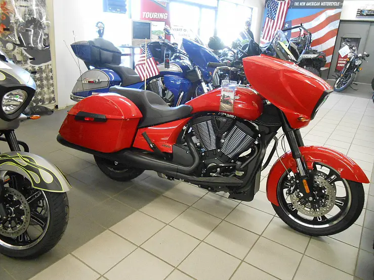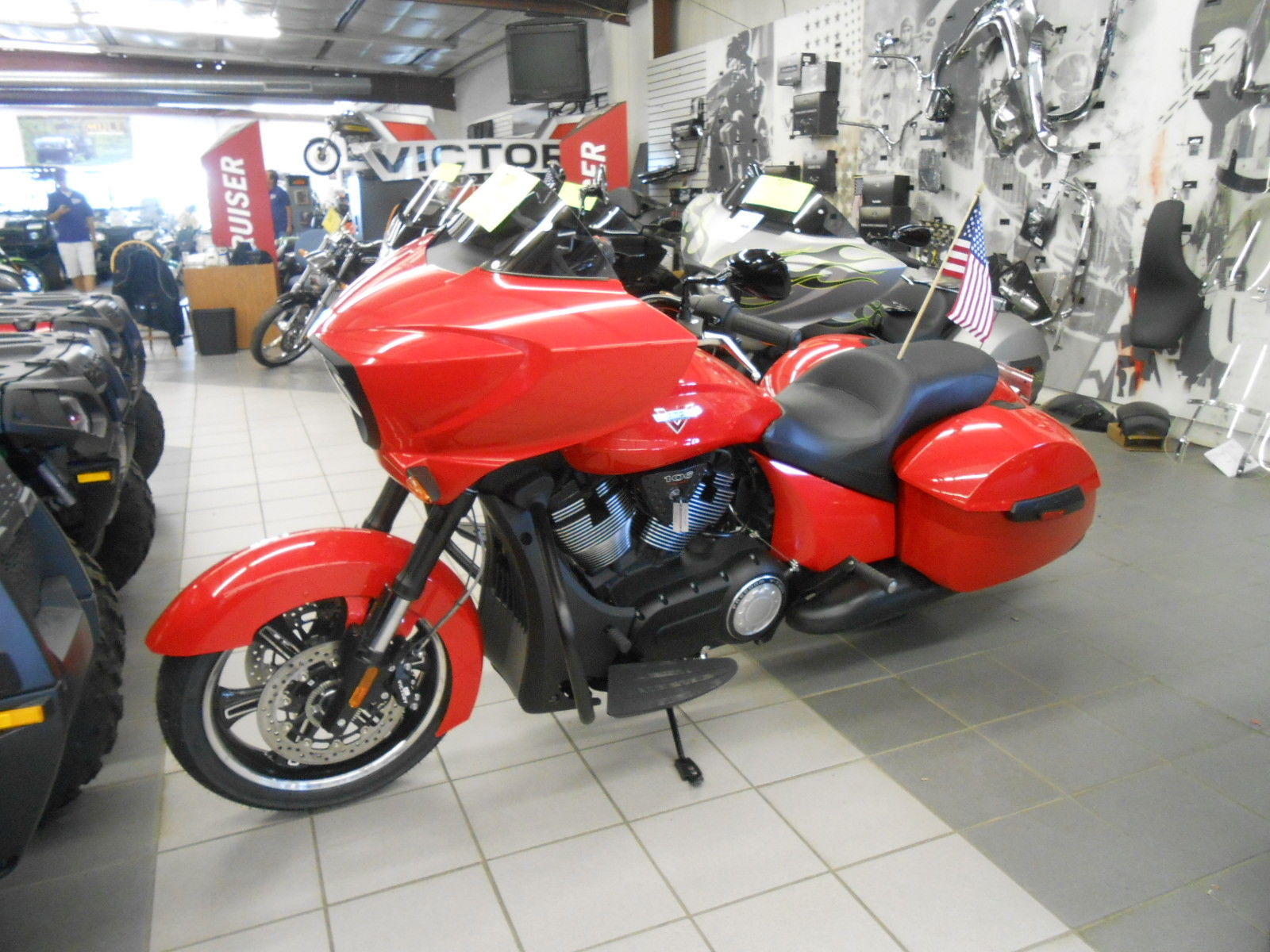 This brand new 2014 Cross Country is ready to take you anywhere in the country you want to go. It has the 106 CI fuel injected six speed overdrive engine that is smooth. owerful and reliable. I has an AM/FM/Weather band audio system with Kicker speakers. cruise control and an air suspension that will smooth out the bumps in the road. Huge saddle bags have plenty of storage for all your gear. If you're looking for a great price for a great price. this one should be on the top of your list. If you're in the Columbia Missouri area and would like see this bike in person or have any questions our information is:Jones Power Sports5825 E. Hwy 163Columbia MO65201573-875-4445jpscycles. comSince we are a motorcycle dealership we reserve the right to sell this Victory at any time during the auction as long as the reserve is not met. Once the reserve is reached. we will hold it until the end of the auction. Thanks for taking a look and good luck!Model:Victory Cross CountryYear:2014Category:TouringRating:Do you know this bike?Click here to rate it. We miss 2 votes to show the rating. Price as new (MSRP):US$ 18999. Prices depend on country. taxes. accessories. etc. Engine and transmissionDisplacement:1737. 14 ccm (106. 00 cubic inches)Engine type:V2. four-strokeEngine details:Self-adjusting cam chains. hydraulic liftersCompression:9. 4:1Bore x stroke:101. 0 x 108. 0 mm (4. 0 x 4. 3 inches)Valves per cylinder:4Fuel system:Injection. Electronic Fuel Injection with dual 45mm throttle bodyFuel control:SOHCCooling system:Oil & airGearbox:6-speedTransmission type. inal drive:BeltClutch:Wet. multi-plateDriveline:Carbon Fiber Reinforced Belt. Primary drive: Gear drive with torque compensator. Exhaust system:Split dual exhaust with crossoverChassis. suspension. brakes and wheelsRake (fork angle):29. 0?°Trail:142 mm (5. 6 inches)Front suspension:Inverted cartridge telescopic fork. 43 mm diameter. 5. 1 in / 130 mm travelRear suspension:Single. mono-tube gas. cast aluminum with constant rate linkage. 4. 7 in / 120 mm travel. air adjustableFront tyre dimensions:130/70-R18 Rear tyre dimensions:180/60-R16 Front brakes:Double disc. ABSFront brakes diameter:300 mm (11. 8 inches)Rear brakes:Single disc. ABSRear brakes diameter:300 mm (11. 8 inches)Wheels:130/70R18 Dunlop Elite 3Physical measures and capacitiesDry weight:347. 0 kg (765. 0 pounds)Seat height:667 mm (26. 3 inches) If adjustable. lowest setting. Overall length:2. 52 mm (104. 4 inches)Ground clearance:147 mm (5. 8 inches)Wheelbase:1. 69 mm (65. 7 inches)Fuel capacity:21. 95 litres (5. 80 gallons)Oil capacity:4. 70 litres (0. 31 quarts)Other specificationsStarter:ElectricElectrical:12 volts / 18 amp hours battery. Carrying capacity:Saddle bags. 17. 4 gallons of storage space. Optional color-matched Lock and Ride?® Trunk. Color options:Gloss Black. Havasu Red. White Metallic. Suede Titanium Metallic. Two-Tone Boss Blue and Gloss Black. Two-Tone Suede Supersteel and Black. Suede Silver w/Flames. Tequila Gold w/Flames