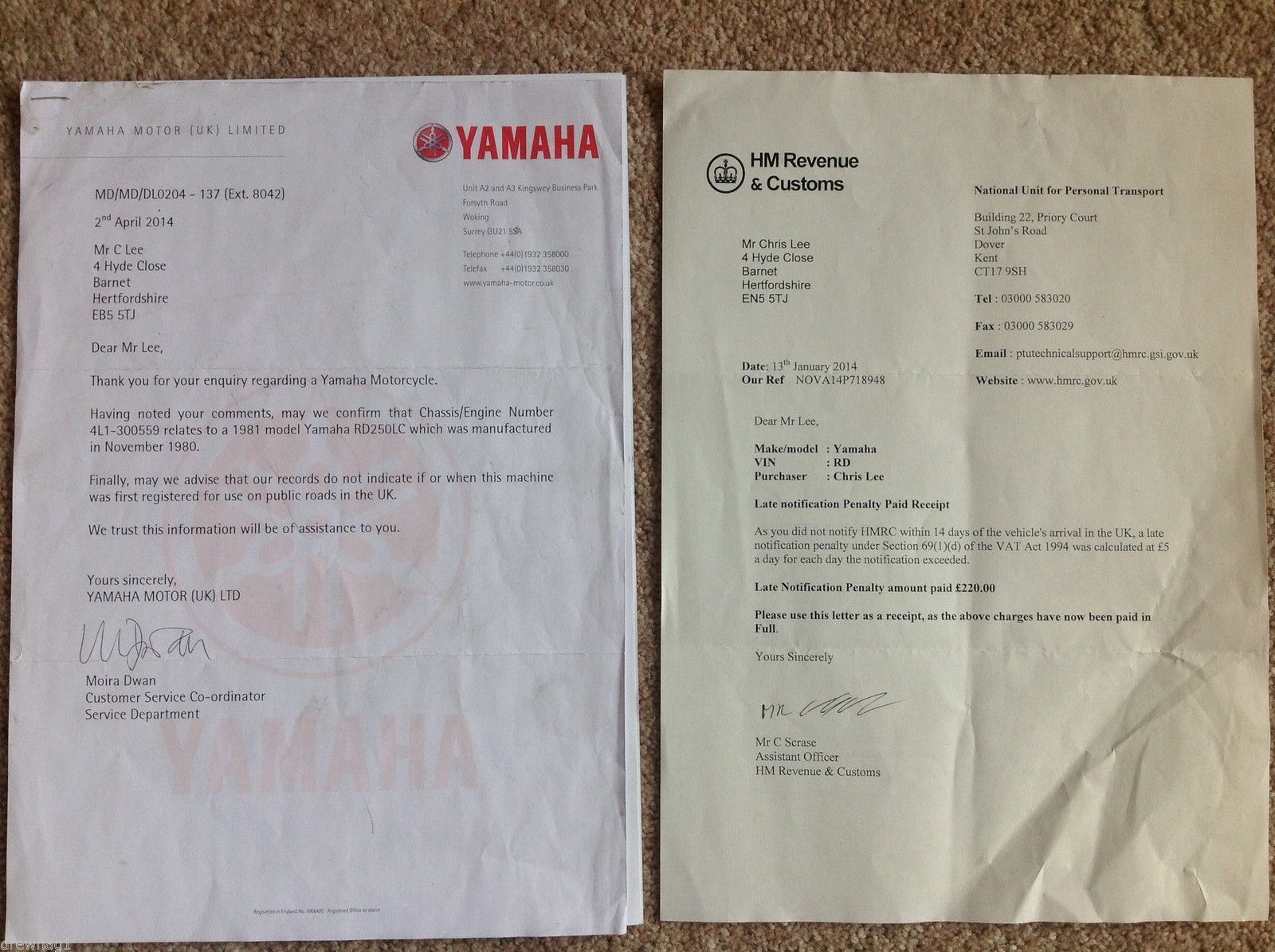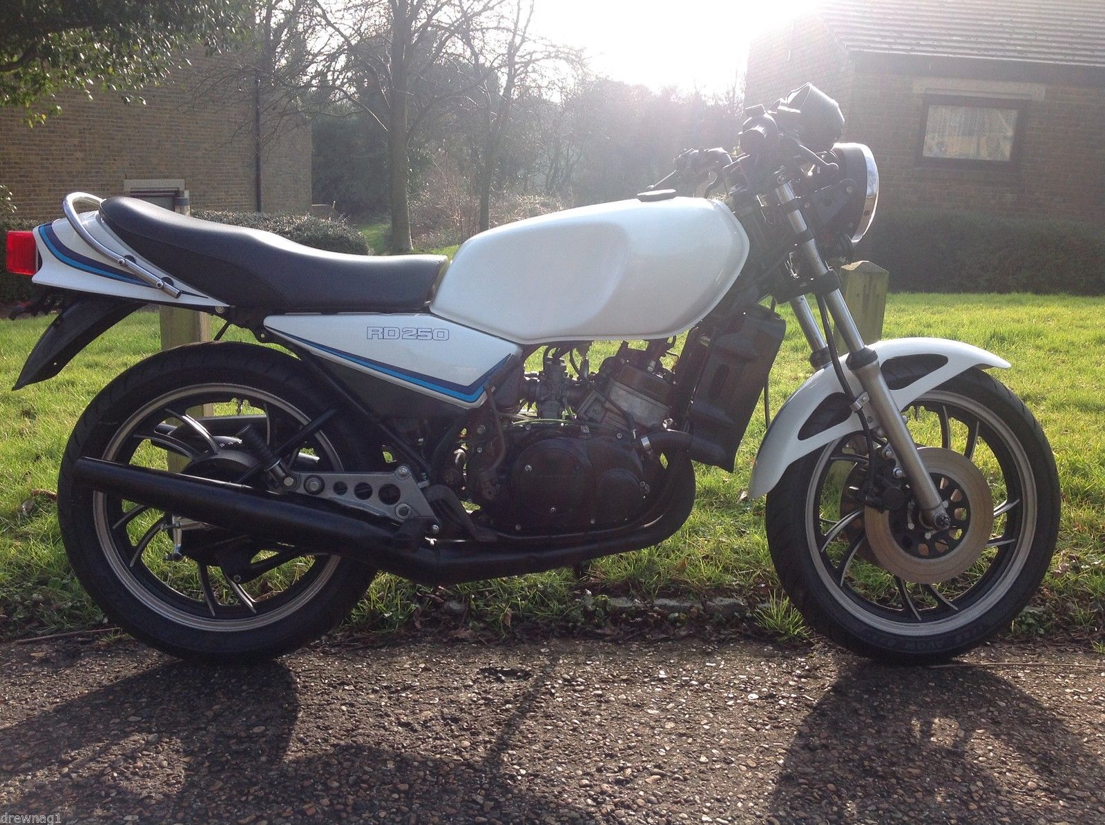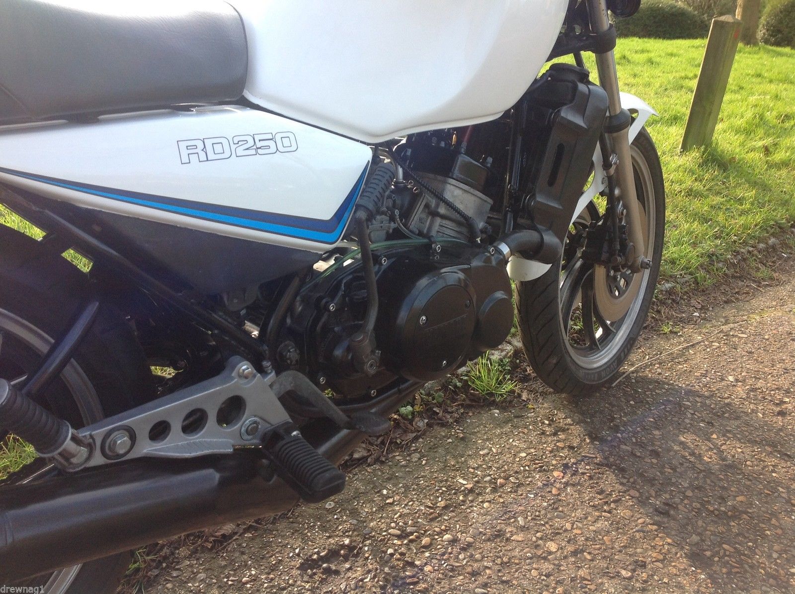 Yamaha rd 250 lc 1980 this bike has been restored and looks very good but it's not quite finished just a few jobs to do ie MOT decals on the tank . indicators if you want them I have one indicator. registering with the DVLA . nbsp;I have got the NOVA form from customs and proof of registration from yamaha with matching frame and engine numbers 4L1The bike has had a lot of new parts as you see ie tyres brake pads clutch nuts and bolts paint job chain and sprockets and much more parts of the frame have been powder coated tank has been sealed inside Bike starts and runs well not much to finish off Viewing welcome I'm in new ash green kent