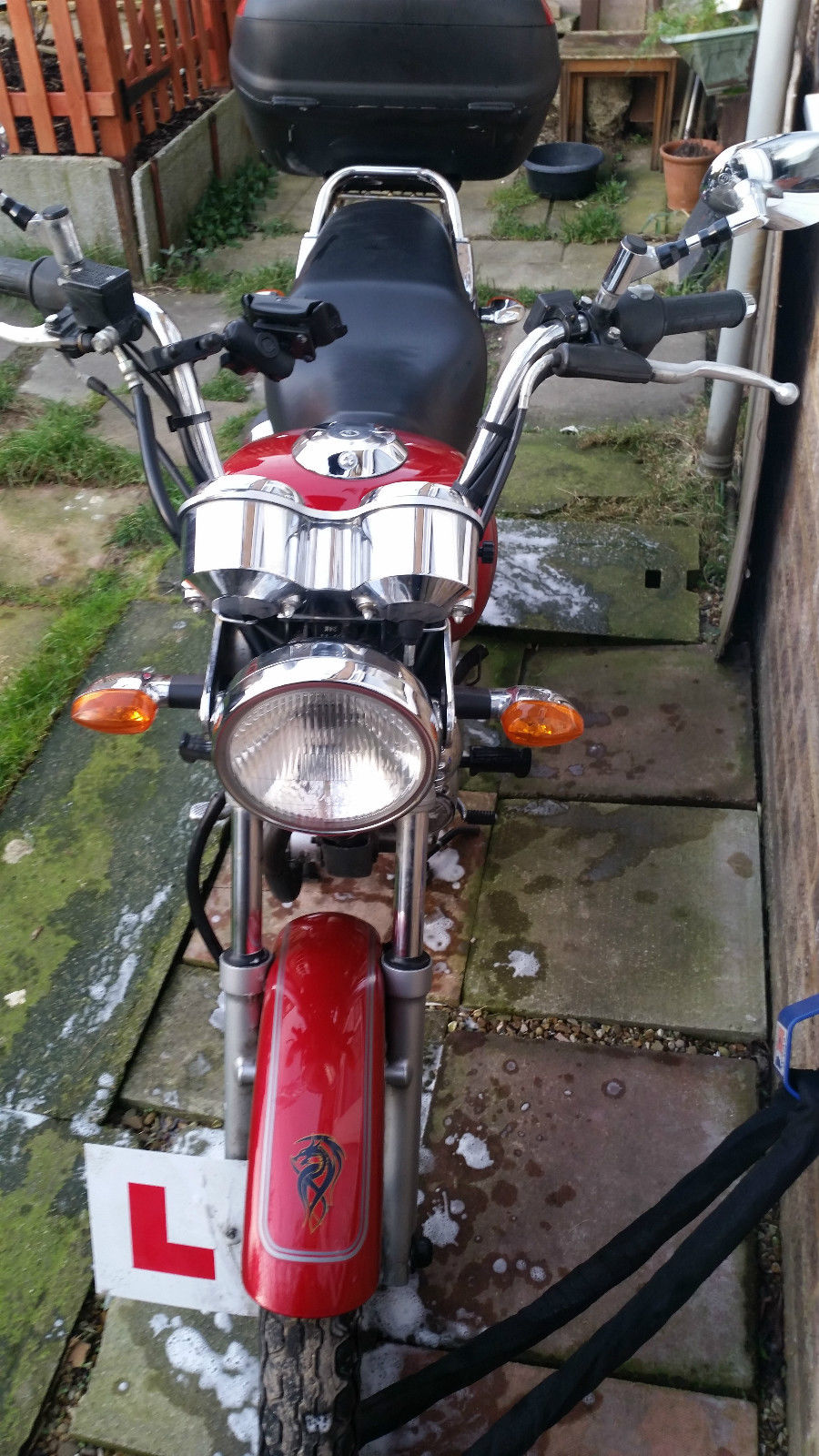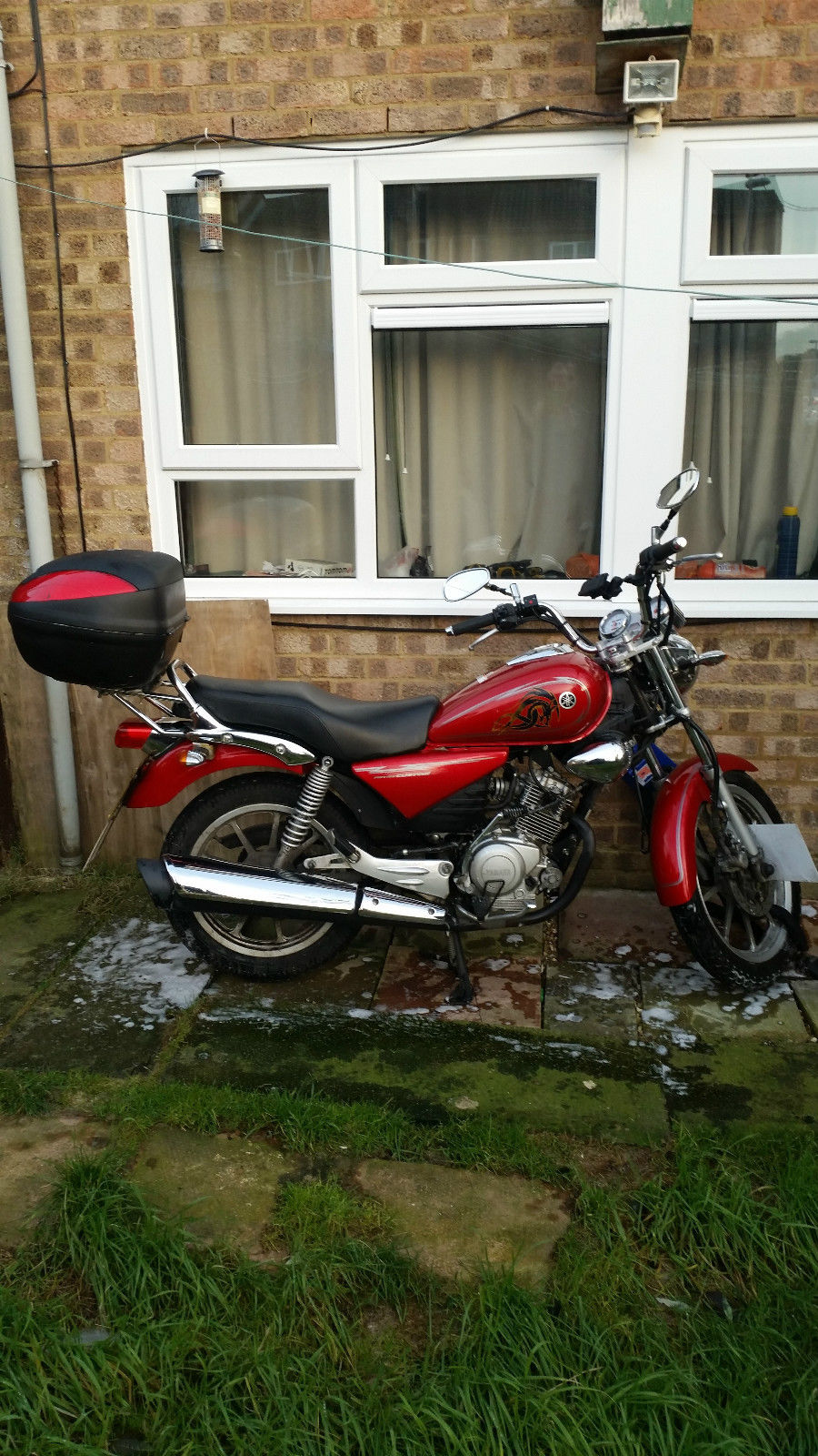 The bike also comes with heated grips very handy for the cold days it really is a lovely runner. t will also come with sat nav and bluetooth headset the scala rider. motorbike only has 4173 miles on the clock has barely been used. the motorbike will be collection only im affraid. Also i have a full bottle of 4 stroke oil that i never had chance to use i have full service history for the bike aswell i am the only owner it has had. All paper work and documentation is available the sat nav is a proper motorcycle sat nav and has instuction manual and brackets i have left the bracket on the bike that i used. reason for selling is i now have a car. the motorbike has half a tank of petrol. also with the bike you will get 2 covers 2 chains 1 disc lock some chain lubricant i had left over all spare keys there all there. as you see from the pictures the bike has been well looked afterÂ