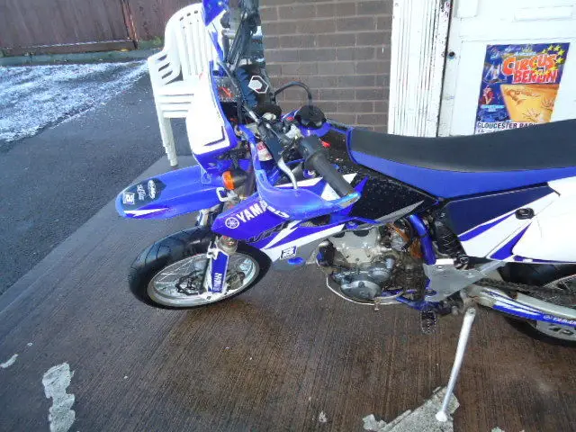 HERE WE HAVE A YAMAHA WR450 SUPER MOTO HAS V5 LOGBOOK HAS DAYTIME USE MOT DUE TO THE FACT ALTHOUGH LIGHTING KIT FITTED BULOBS KEEP BLOWING. AS ELECTRIC AND KICK START EXCEL RIMS GOOD TYRES VERY CLEAN BIKE STARTS AND RIDES EXCELLENT WITH NO FAULTS RECENT STICKER KIT JUST TAKE A LOOK AT THE PHOTOS PLEASE CALL US FOR MORE DETAILS ON 07776253651