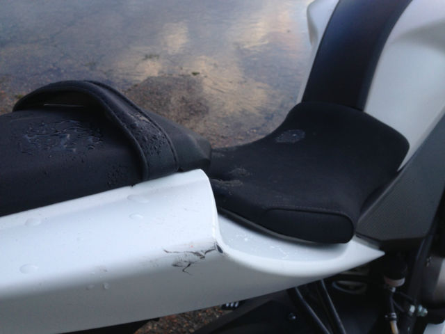 As you can see by the pictures this is a great bike for the money. it has always been garaged and i have only been caught out in the rain a few times. the water in the pictures is from washing just before i took the pictures.