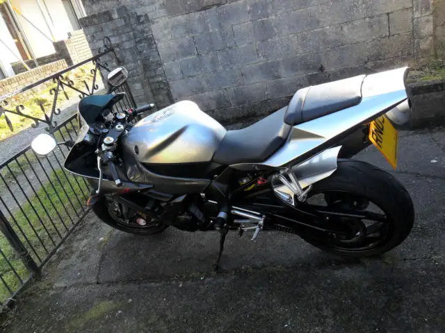 Here for sale is my Yamaha R1 2003 in black and silver. Currently on 23522 miles but this will go up while the suns out. This is a cracking bike which I only purchased back in November. I'm gutted to be selling but I'm looking to downgrade slightly (gsxr 600. zx6r etc) and use the freed up money to buy a car. This is an absolutely amazing bike to ride. Very quick and sounds great with the Akrapovic system. FSH with stamps in the book at 657. 4018. 9565. 14082. 18921. 19995 and 22053 miles (last service was 18th May 2014). MOT till 19th May. Stacks of paper work. Previous owners have cared for this bike. Extras: full Akrapovic exhaust system (no baffle). black race levers. small Yamaha number plate. private number plate included in sale (G5 PXL). Ohlins steering damper. crash bobbins. Yamaha R1 bar ends and Meta alarm system. Mechanically faultless. Cosmetically in fantastic condition however. there are a few scuffs where the person before dropped the bike (very minor and I've tried to take photos to show). Also a 2 inch scuff to the left of the seat and a small scuff above the brake light. Tyres both have plenty of tread. Everything works as it should. The pictures only show 1 mirror. I do have the other one but haven't got round to putting it back on. Test rides welcome but only with full cash in my hand and proof of insurance. I'm in no rush to sell (if it wasn't for the wife I wouldn't be getting a car at all). I'm open to a swap for another sports bike or supermoto but would need to be something with cash coming my way. Within ebay rules of course. Any questions please call on 07712175801. ?3300 Ono. Thanks for lookingAsh