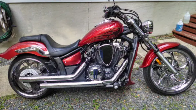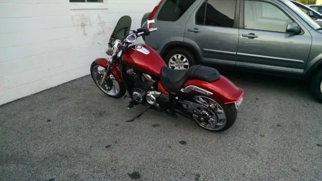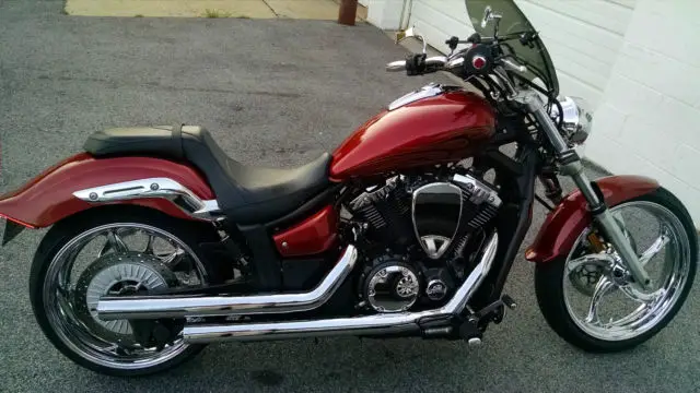AS powerful and agile as it is fast and beautiful . My 1300 Stryker will not disappoint you or your friends . Solid chrome wheels are the first thing you notice . chrome pulley guide cover and main pulley cover as well as both transmission covers engine heads and so many other chrome items . The Cobra drag pipes sound amazing and there is a Fi2000 fuel management mod under the seat. I also installed mini boards and custom shift and brake pedals . The seat is low to the ground so my feet are flat on the ground . I really love the small wind shield which tilts back enough to push the wind over you. The aftermarket horn is much louder . My favorite feature is the LED tail light and turn signal system . but you can have the stock system also. This bike has never been down and never been wet . I clean it with a custome motorcycle spray. The bike doesn't even have a dirty side . I am getting a touring bike so this one needs a new owner. The other owner purchased a 4 year service plan. I have it filed and you can have that too . Not sure how much of it is left.