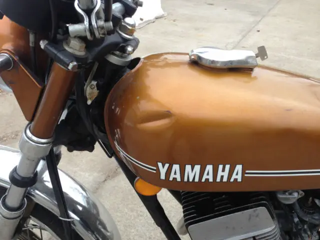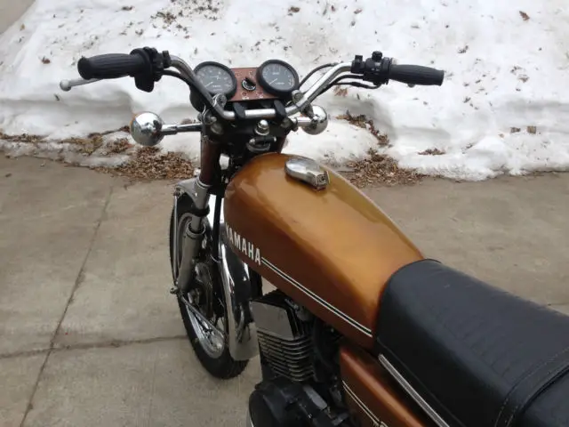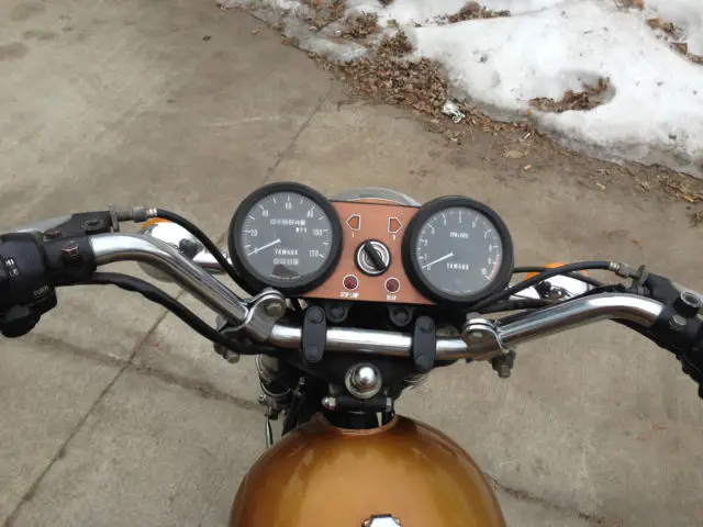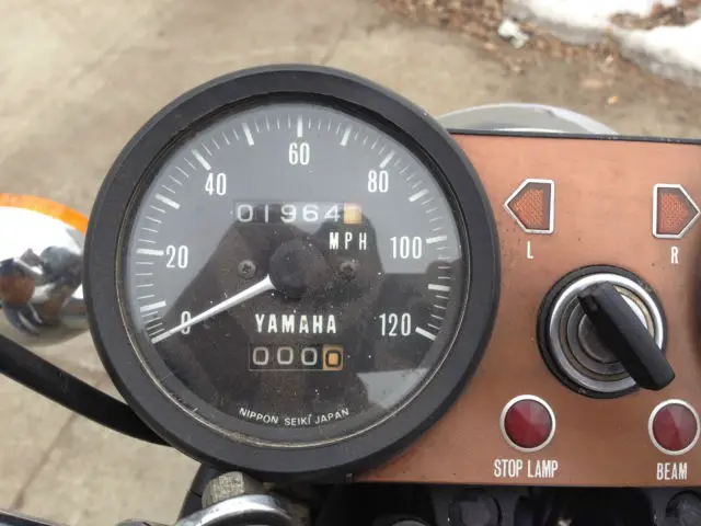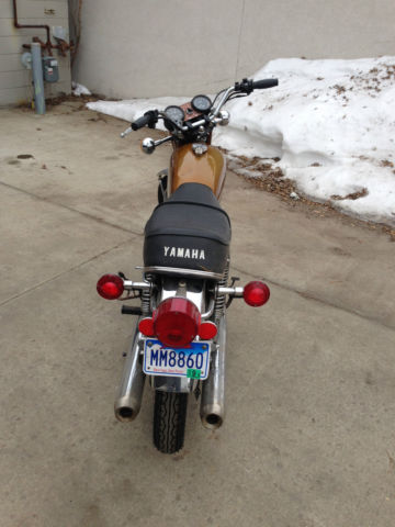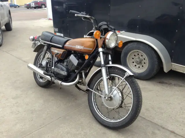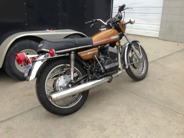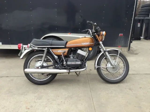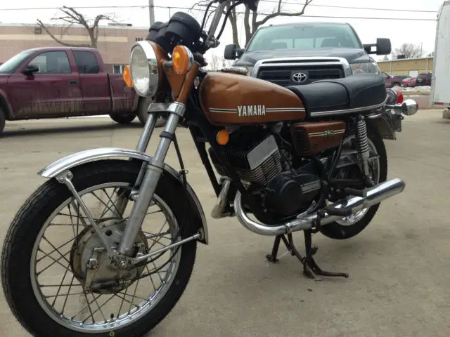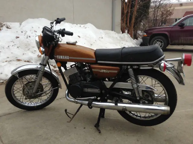 This Auction is for a 1974 Yamaha RD 250. Bike is in very good original condition. Mileage is 1965 actual miles. I recently put new tubes and tires on it and they have no milage on them. Also a complete brake inspection was performed as well as carbs have been cleaned up and adjusted. This is a 6 speed model transmission. The seat has 2 minor tears (as shown in pictures). Gas tank has a few minor dings as well. Overall this bike has been sitting in storage for a number of years until I came aacross it. It didn't take much to get going again. I also replaced the air filter and installed a petcock rebuild kit. Fresh fluid in engine as well as brand new points!! Lights. orn. blinkers all work as should! Has been very easy starting bike and great runner!!!