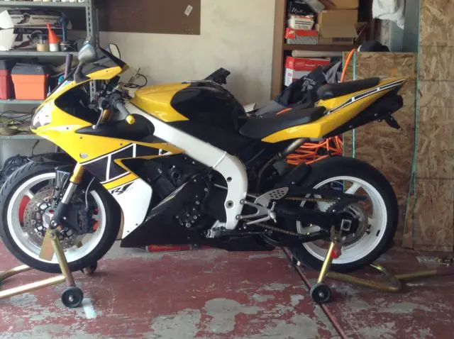 2006 50th Anniversary R1 with 7. 00 miles on it!-Clean titleMods:Powder Coat Gloss white frame. heels. owder Coat Gloss black swing arm and sub frame2008 R1 front end conversion (front forks. otors. alipers)Akropovic cat-delete Y pipeA&R Baffle kitK&n Air filterNo cut frames slidersClutch SliderNew chain and sprocketsIntegrated front and rear blinkersTires:Michelin Pilot Power 3(700 miles on them)Private seller/owner! Love this bike hate to see it go but unfortunately it's time! Never had any issues always been professionally serviced. at every recommended service mark. Thx hope this bike is right fit for you as the winner of it will be extremely satisfied in purchasing a reliable like new flawless bike instead of some of the junk out there!!!