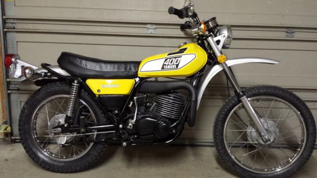 For your consideration "NO RESERVE AUCTION" bid to win. Wire transfer or Paypal payment within 24hrs from close of auction. I can help with motorcycle transporters coast to coast for reasonable rates. 1976 Yamaha DT400 really nice running and driving condition with clear title. New paint from head to toe. Meticulously gone through every nut and bolt. bushing. and correct part. Re lubed or greased everything cables. swingarm. wheels. speedo drive. New O-ring chain. orig spec trials tires IRC. new tubes. new comfy grips. decals and stickers everywhere including drums and switches. new light bulbs throughout including cluster. seat cover. and fuel petcock. Completely cleaned and rebuilt front forks. new seals. new rubber swipers. and hand shined. Nice wheels and spokes. fuel tank is pretty nice inside too. Carb rebuilt and soaked. Starts with one or two kicks idles nice and ready for road near you. Frame and engine match. Tank was wet sanded to perfection before decals. If you desire an additional clear coat over decals that can be arranged. If your looking for a super nice vintage street legal endure this is DEFINITELY THE NICEST ONE ON EBAY!!!! SHOW BIKE COLLECTORS EDITIONIf your feedback score is under 10 your bid will be deleted. Please DO NOT BID if not serious. Keywords Yamaha YZ DT CT AT IT TT RD RZ TX XS YL1 YL2