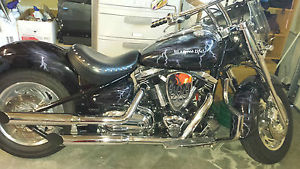 Yamaha VX1600AManufacturer Yamaha Motor CompanyAlso called Midnight Star(EUR) Wild StarProduction 2002Class CruiserEngine 1. 02 cc (97. 8 cu in) 4-stroke air-cooled V-twinBore / stroke 95 mm ? 113 mm (3. 7 in ? 4. 4 in)Compression ratio 8. 3:1Power 62. 6 hp (46. 7 kW) @ 4. 00 rpmTorque 134 N·m (99 lbf·ft) @ 2250 rpm ( altered have paperwork )Transmission 5-speed gearbox to belt driveFrame type Steel double cradleSuspension Telescopic forks front. rear swingarm (Link-type monocross suspension)Brakes 298 mm (11. 7 in) double disc front. 200 mm (7. 9 in) single rear ( custom Rotors) Wheelbase 1. 85 mm (66. 3 in)Dimensions L: 2. 00 mm (98 in)W: 1. 00 mm (43 in)H: 1. 40 mm (45 in)Seat height 710 mm (28 in)Weight 307 kg (677 lb) (dry)This bike has a unique paint Job. Lighting and Full Moon Effect with Ghost paint with affirmations. Custom Barron Flame Floor boards. Custom rims. rotors sport bars. Big Air dyno tune upgraded flat tapp cam kit and pistons. This bike after all said and upgraded with paint including one half and one full face helmet $20. 00. Affirmations: "Live with Passion" Attitude is contagious is yours worth catching?" " Attitude" " I'm having my best year ever""Passion is Faith Set on Fire" "Its a good life" Mileage is under 12. 00 With right offer will throw in jackets. 2 pair gloves. 4 helmets. tank bag and rolling back pack. riding boots size 10 woman's and more. Have to sell. Not able to ride anymore hardest thing I've done. MAKE ME AN OFFER !!! ONLY IF SERIOUS