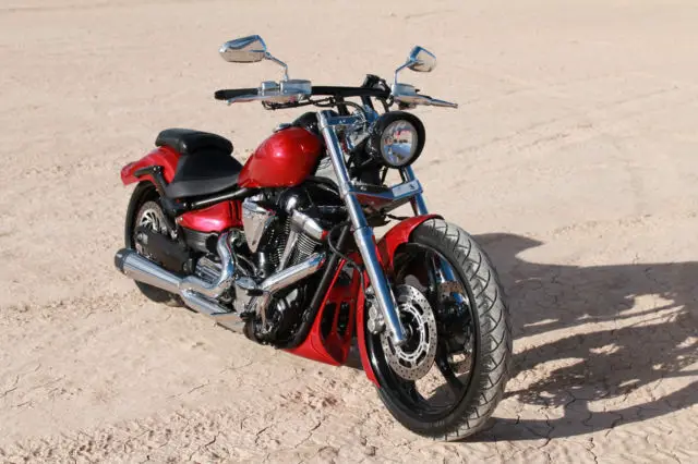 Just finished a 2011 Star Raider. Has 900 original miles. yes only 900 miles!! Factory 113 cubic inch engine (1900cc) and is gorgeous. Professionally built by me A. M. P customs. has about 30 miles since customizing. *Baron rear lowering kit *Progressive front lowering kit *Baron Shorty kickstand *A. M. P customs hand fabricated one of kind drag style handlebars *Low and Mean Reaper front fender *Low and Mean Chin fairing *Factory seats custom redone with memory foam *A. M. P customs Candy Red Tri-Coat paint job *Powder Coated black wheels. handle bars. engine covers. fender struts. dash. license plate bracket and headlight trim ring. *A. M. P customs side mount license plate *Custom Dynamics integrated L. E. D taillight with turn signals & custom tinted by A. M. P customs *Freedom Performance 2 into 1 exhaust system*Spike Air cleaner This is a one of a kind custom bike. rides amazing. is very powerful. very sleek. turns heads and gathers crowds everywhere I go. Pull up to the light next to a Harley and see the envy in the persons eyes. then blow the doors off it :) NOTE: I can hardly stay off of it so mileage may be slightly higher at time of sale. too hard to resist riding it. Has clean clear Nevada title in my name. ANY QUESTIONS PLEASE EMAIL ANY TIME OR CALL / TEXT DURING PACIFIC STANDARD TIME 7AM TO 9PM 702-502-7459