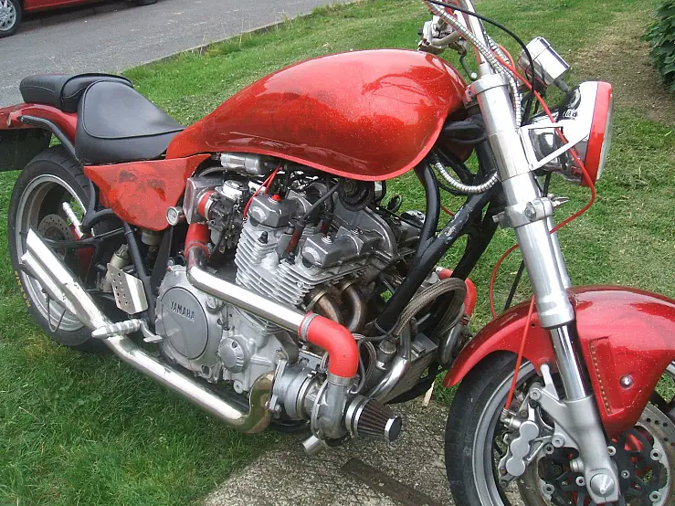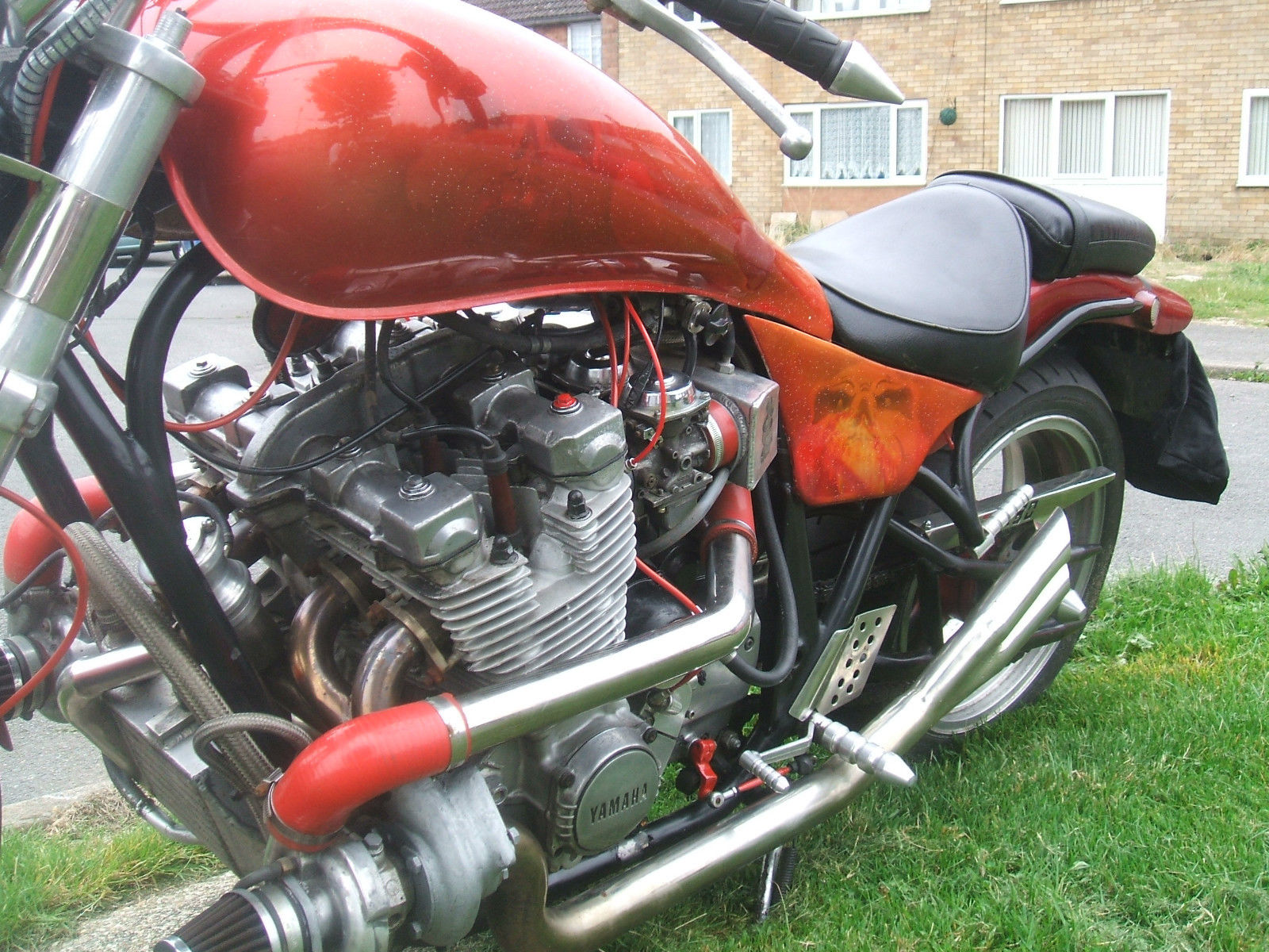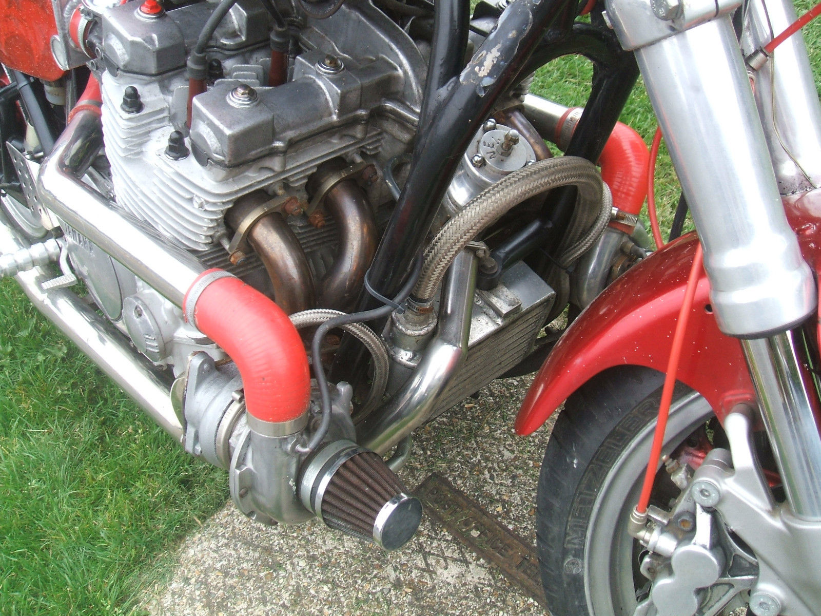 here is a yamaha fj1200 which as can be seen in the pictures has had alot of work done to it with i beleive a kawasaki zx900 front end and back wheel one off custom made tank. frame. handle bars. exhaust pipes and many other bits - too many to list. The bike also is fitted with a twin turb0 system and yes they do work and this bike is not for the faint hearted it will give superbikes a good run for their money. one of the turbos does leak some oil but that is an easy fix as it is only a gasket that needs replacing. other than that the bike starts and runs great it just needs tax to use it. i believe it has aprox 8 months mot. i am open to sensible cash offers Thanks for looking buyer must collect with cash on collection any questions please contact me on 07786662157 as i dont have 24 hour access to ebay. thanx since this was listed iv had some problems with the turbos so i have since removed them so the bike will need a link pipe making between the down pipes and the main pipes. so it is now sold as a near finished project also not all the numbers are clearly shown on the engine but a full recipt can be given. the bike also now has road tax on it any questions plz ask i may take a part ex on another bike plz ask