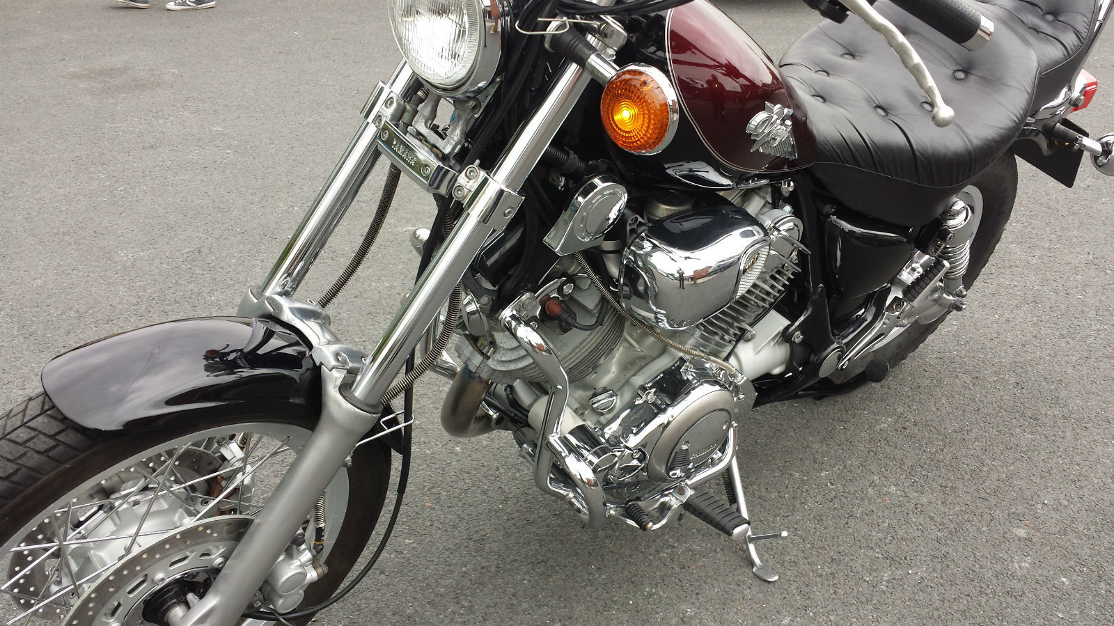 excellent example of this very popular V-twin air-cooled custom in burgundy black. lovely clean bike which runs superb. had a new starter. lot's of old mot's. will come serviced with mot till 28/5/15 and 6 months tax and 3 months warranty. delivery nationwide.