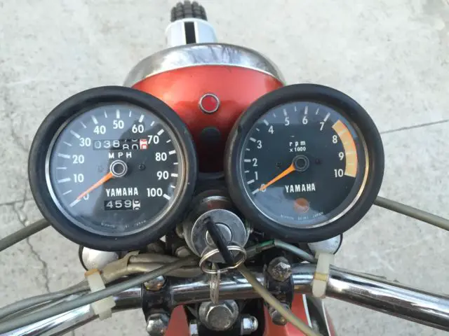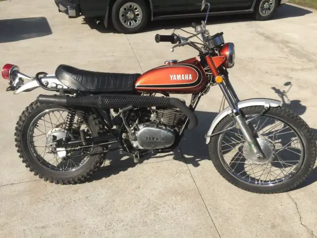 1973 Yamaha rt-3 360 enduro. I will tell you what i know about it. Starts and runs good has very good compression. Millage is 3. 80 miles. Looks like it has not had a lot of off road use. The back tire was changed to a knobby but i have a original trails tire what came on it. The foot pegs are steel not rubber what came on it. missing turn signals. has aftermarket bassani expansion chamber. real good pipe that alot of people liked in the 70's. No dents in tanks original paint but has a few nicks what can be expected from bike that's this old. I bought it from a man that had a marina he didn't use it the guy he got it from was the original owner. Seat looks good has good sprockets and chain. Oil injection is hooked up and working. Lights work. brakes are also in good working order. Back fender was repainted front looks like original paint. I have original tool-kit. Also i think real shocks are not original look after market. Anything else please email me i will get back too you as soon as i can. You are responsible for shipping arrangements and costs! Thanks for looking Bruce.