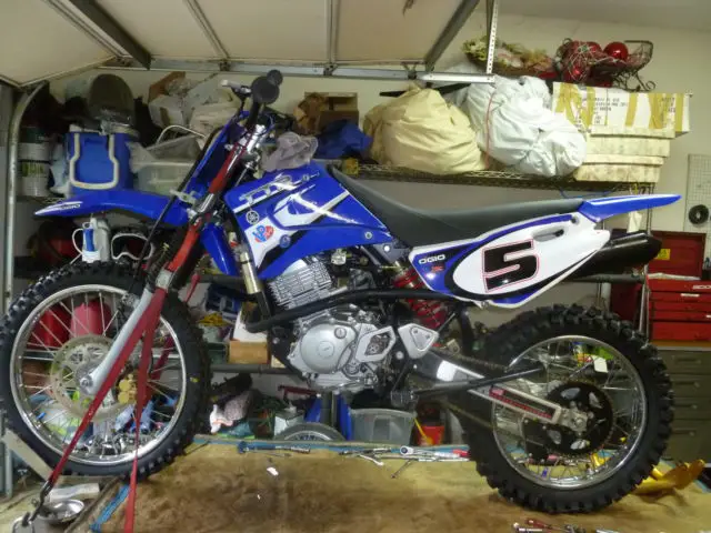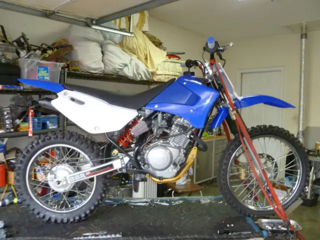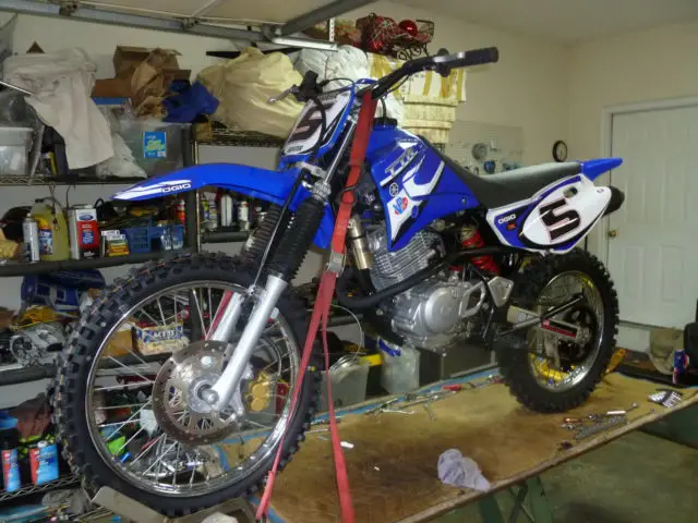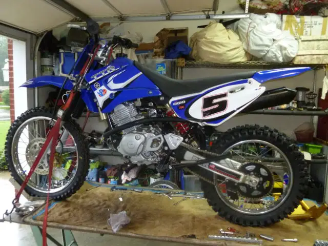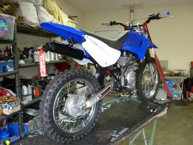 I BUILT THIS TTR/BBR 150 FOR MY DAUGHTER TO RACE BUT SHE LOST INTEREST SO I MADE IT A FAST AND FUN BIKE FOR ANYONE THAT RIDES. I HAVE THE BBR SPRINGS SETUP FOR THE "BIG" KID IN ALL OF US. I STARTED OUT WITH A GOOD TTR "BIG WHEEL" BIKE AND ADDED THE FOLLOWING. NO TITLE ONLY BILL OF SALE FOR DIRT BIKESBBR 150 KIT (KITS SELLS FOR $359. 00)PORTED HEAD WITH NEW VALVES $320. 00BBR CARB KIT ( $325. 00)BBR "OLD" STYLE FRAME CRADLE (STRONGEST MODEL $179. 00 )BBR CHAIN GUARD $69. 00BIG FOOT AFTERMARKET PEGS $75. 00LIGHTENED FLYWHEEL (20 OZ)FMF RACE PIPE $175. 00NEW CLUTCH PLATE & SPRINGSNEW KICKSTART GEAR INSTALLED (WEAK LINK ON THESE BIKES)1 inch BAR RISERSFOLDING FLY RACING SHIFTER (NOT SHOWN IN PICS)NEW CHAIN AND SPROCKETS (GEARED FOR BACKYARD/TRAIL RIDING) NEW GRAPHICS (SAME AS IN PICS BUT NO NUMBER)NEW MOTO MAX DUNLAP TIRES (19 INCH FRONT AND 17 INCH REAR)ALLUMINUM LE SWINGARM WITH NEW LINKAGE (STRONGER/LIGHTER)FULLY ADJUSTABLE RESI REAR SHOCK WITH BBR SPRING (FRESHLY TUNED & CHARGED)REWORKED FRONT FORK (FRESH REBUILD)NEW GRIPPER SEAT COVERNEW YAMAHA PLASTICS AND CONTROLSOLD PARTS IN TOTE COME WITH THE BIKE IF YOU WANT. (PROOF WORK HAS BEEN COMPLETED)THIS BIKE IS "LIKE NEW" AND READY TO RIDE. FUN FOR EVERYONE IN FAMILY WEIGHING 75 LBS TO 275 LBS. (VOTED #1 PIT BIKE 9 YEARS IN A ROW!)FREE SHIPPING ONLY IF YOU HIT THE BUY IT NOW. ALL OTHERS WILL NEED TO PICKUP THE BIKE IN MIDDLE TN OR ARRANGE TO HAVE IT PICKED UP. I HAVE USED USHIP WITH GREAT SUCCESS.