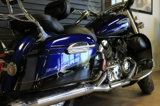 <div ><img src="http://ti2. auctiva. com/sw/java. gif" border="0"><br><table ><tr><td height="28px" v ><font face="arial" size="2"><b><a href="http://emporium. auctiva. com/cletis442" target="_blank">cletis442 store</a></b></font></td><td><a href="http://emporium. auctiva. com/cletis442" target="_blank"><img src="http://ti2. auctiva. com/sw/thumbgallery. gif" border="0"></a></td></tr></table></div> <img src="http://ti2. auctiva. com/web/aswCredit. gif" border="0"><br><a href="http://www. auctiva. com/?how=scLnk0" target="_blank"><img src="http://ti2. auctiva. com/images/sc1line0. gif" border="0"></a>ROYAL STAR TOUR DELUXECall Curtis for questions at 903-454-4440 Buy from Louis Powersports. nbsp;located in Greenville TX. Visit Louispowersports. com for additional information on all of our vehicles. Texas residence are responsible for sales tax and state fees. Please call to check current inventory before committing to buy. A deposit of 500 dollars is required to hold any particular unit. Ultimate seatsonly 16200 milesscuff on right bagnormal wear and tear on pant. few small scratches here and there. Payments:A 500 deposit is required to hold the machine. We reserve the right to sell any product on or off ebay without a deposit. Once we receive your deposit we will email an invoice with wiring instructions. You may wire. pay by check. or finance. All payments must be completed by the end of each month. This way we can guarantee our pricing as manufactures rebates change. Feedback:Our reputation is our lively hood. Here at Louis Powersports we pride our self on customer service. and having the best possible sales experience. It is imperative we earn your positive feedback and we ask you share it here on ebay and anywhere else you feel fit. For any reason you feel you can not do so please give us a call. we are here to listen and help. Shipping:Local pick-up in person is preferred. We do understand some customers would like to have their vehicles shipped. Any shipping arrangements are the responsibility of the customer. Questions: Call 903-454-4440 9-6 Monday - Friday or 9-4 Saturday Central time and ask for Curtis. Have a question after hours? text or call 903-513-7649Standard FeaturesKey Features: The best of two worlds: Stripped-down street cruisability and plush long-distance touring capability in one motorcycle. Quick-detachable windshield and backrest let the rider optimize the bike for cross-town cruising cool or cross-country touring comfort quickly without tools. Electronic cruise control with right handlebar controls for ease of use. Color-matched locking hard-shell sidebags with handy. one-touch openers and spacious 9. 3-gallon storage with interior storage pouch. 67. 5-inch wheelbase provides a smooth highway ride and plenty of room for rider and passenger. The Royal Star Tour Deluxe S gets chrome accents to the front end. Engine: 79-cubic-inch (1. 94 cc) liquid-cooled. DOHC 70-degree V-four tuned to put out class-leading power—97 horsepower @ 6. 00 rpm and maximum torque at 89 ft. lbs. @ 4. 50 rpm—for incomparable cruising performance. Four heated Mikuni 32 mm carburetors with TPS deliver seamless throttle response and greater power across the entire rev range in nearly any climate. Compact-design dual intake system enhances performance without sacrificing fuel tank capacity. Large-capacity radiator ensures superior engine cooling for maximum efficiency. Single-axis internal counterbalancer reduces engine vibration for super-smooth running. Wide-ratio five-speed transmission with 4th and 5th gear overdrive provides plenty of highway passing power as well as low-rpm. fuel-efficient cruising. Low-maintenance hydraulic clutch actuation and strong. low-maintenance shaft drive for touring convenience. Chassis/Suspension: High-integrity. single-backbone frame with solid engine mounting and 29-degree caster angle delivers responsive steering and excellent handling. Air-adjustable telescopic front fork with 5. 5 inches of travel smoothes out the bumps and adapts to varying load capacities. Air-adjustable link-type rear suspension features a vertically mounted single shock with revised damping for a classic hardtail look and outstanding long-distance ride quality. Large-diameter front and rear disc brakes with sintered pads provide strong. linear stopping power. New rider and passenger seats provide even more room and comfort along with a low seat height—29. 1 inches. Full-sized. floating-type rider and passenger floorboards reduce vibration and are positioned for optimal long-distance comfort. Additional Features: Cool retro "dash" combines classic looks with new-age function. including: digital speedometer. odometer. dual tripmeters. fuel tripmeter. clock. fuel gauge and indicator lights for cruise control. overdrive. neutral. high beam. turn signals. water temperature and low oil-level. Wide hand control levers offer great feel and look cool too. Quick-detachable windshield and backrest let the rider optimize the bike quickly without tools. 5. 3-gallon fuel tank provides outstanding touring range along with classic lines. Incomparable fit and finish includes flawless paint with extensive chrome and brushed stainless steel accents as well as deep. valanced steel fenders. Large. powerful 12-volt 60/55-watt halogen headlight in stylish chrome shell with custom bezel maximizes nighttime visibility while cutting a stylish profile. Ignition switch with integrated steering lock mounted near the front of the fuel tank for extra convenience. 12-volt 18AH maintenance-free battery for reliable starting even in cold weather. SpecsManufacturer YamahaModel Year 2008Model Royal Star® Tour DeluxePrice *$6. 99. 00Color Two-tone Galaxy Blue / RavenMiles 16000DimensionsLength 98. 6 in. Height 60 in. Width 39. 8 in. Weight 787 lbs. Ground Clearance 5. 9 in. Wheelbase 67. 5 in. Seat Height 29. 1 in. EngineEngine 79 ci. liquid-cooled. 70° V-4. DOHC. 4-valves / cylinderDisplacement 1294 ccBore x Str